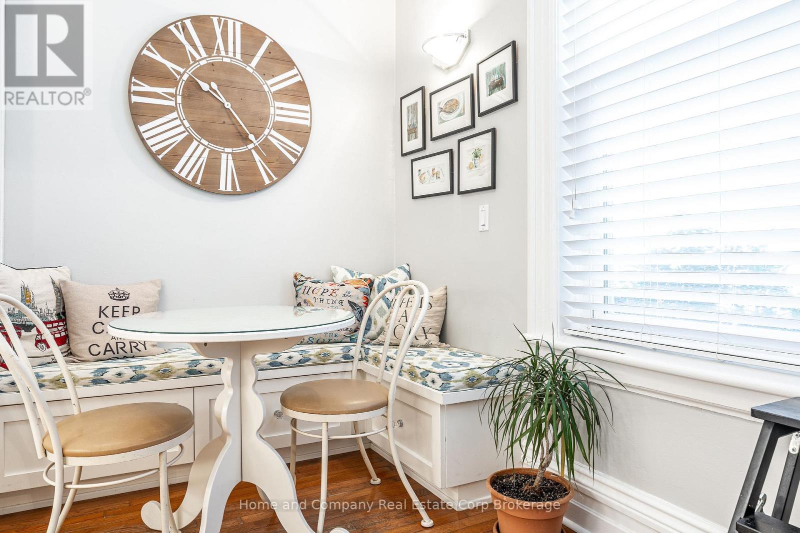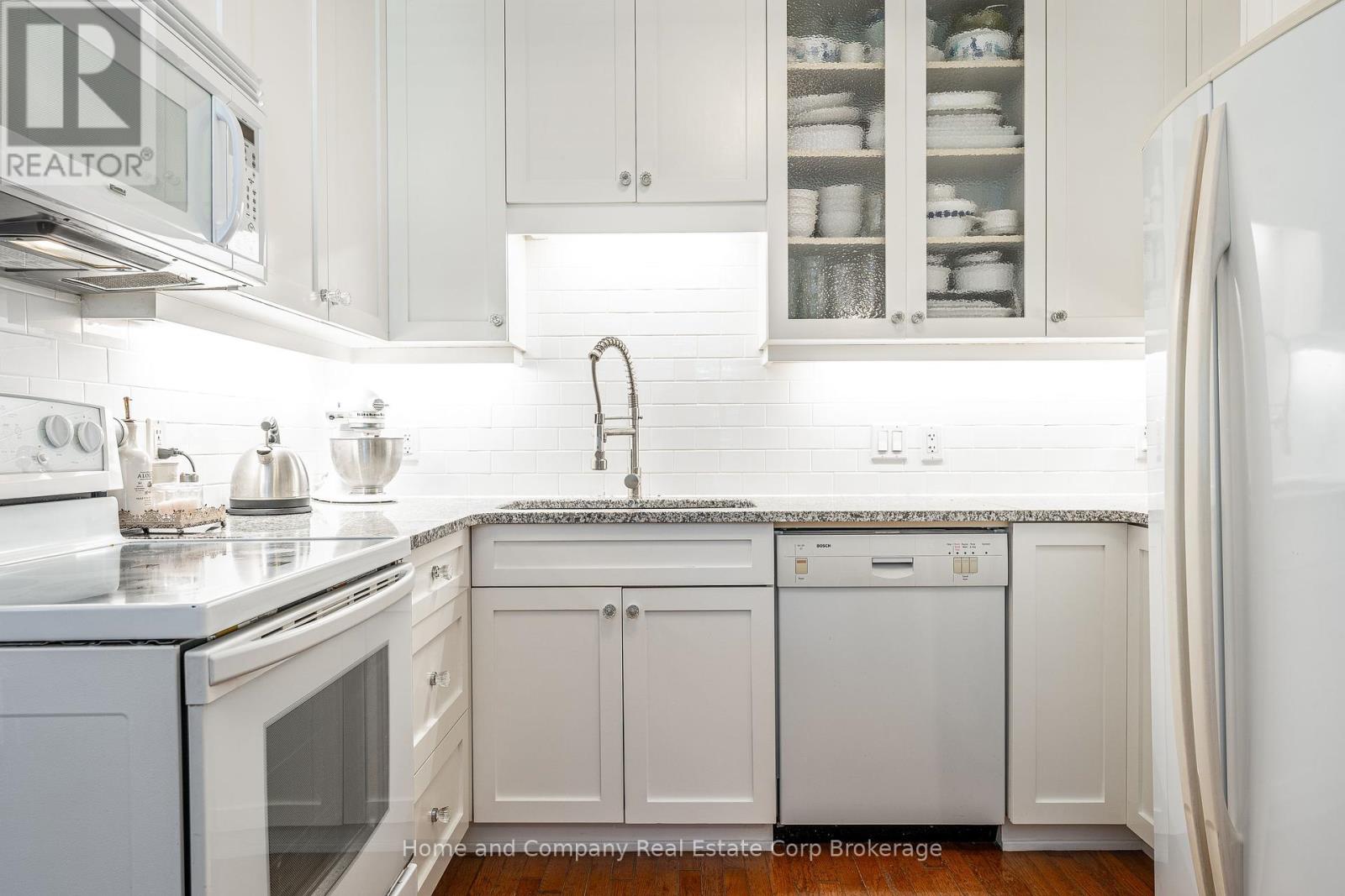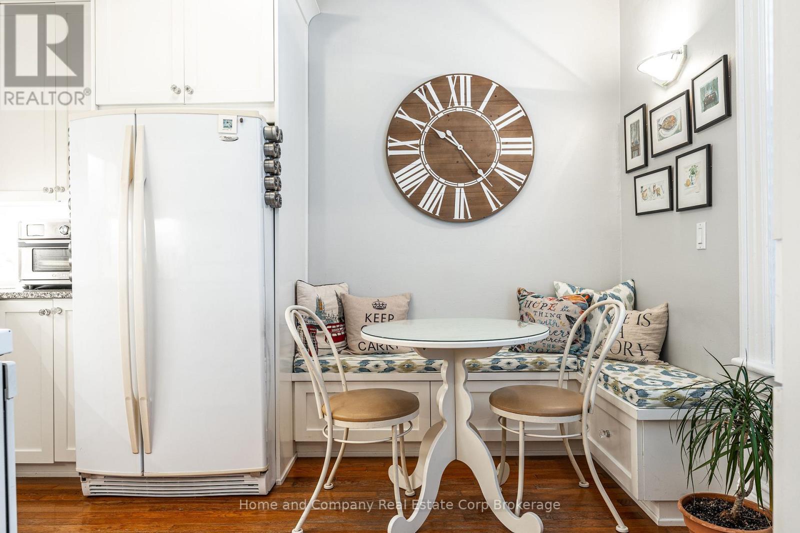 $177.92 MonthlyWelcome to this beautifully updated yellow brick two-storey century condo townhome, located in a mature and quiet neighbourhood close to downtown Stratford! Step inside to discover a thoughtfully upgraded kitchen featuring granite countertops, ample cabinetry, and a stylish built-in seating nook, perfect for casual dining or morning coffee. The spacious main floor continues with an open concept living and dining area, followed by a generously sized mudroom complete with laundry and a convenient powder room. Upstairs, the oversized primary bedroom includes dual closets with plenty of space for a sitting area, two additional bedrooms that offer flexibility for guests or a home office, and a modernized bathroom complete with a walk-in shower. Step outside to your fully fenced private courtyard with a new deck, perfect for low-maintenance and relaxing living. With two owned parking spots, low monthly condo fees, this is an excellent option for those seeking character, comfort, and convenience all in one package. (id:51300)
