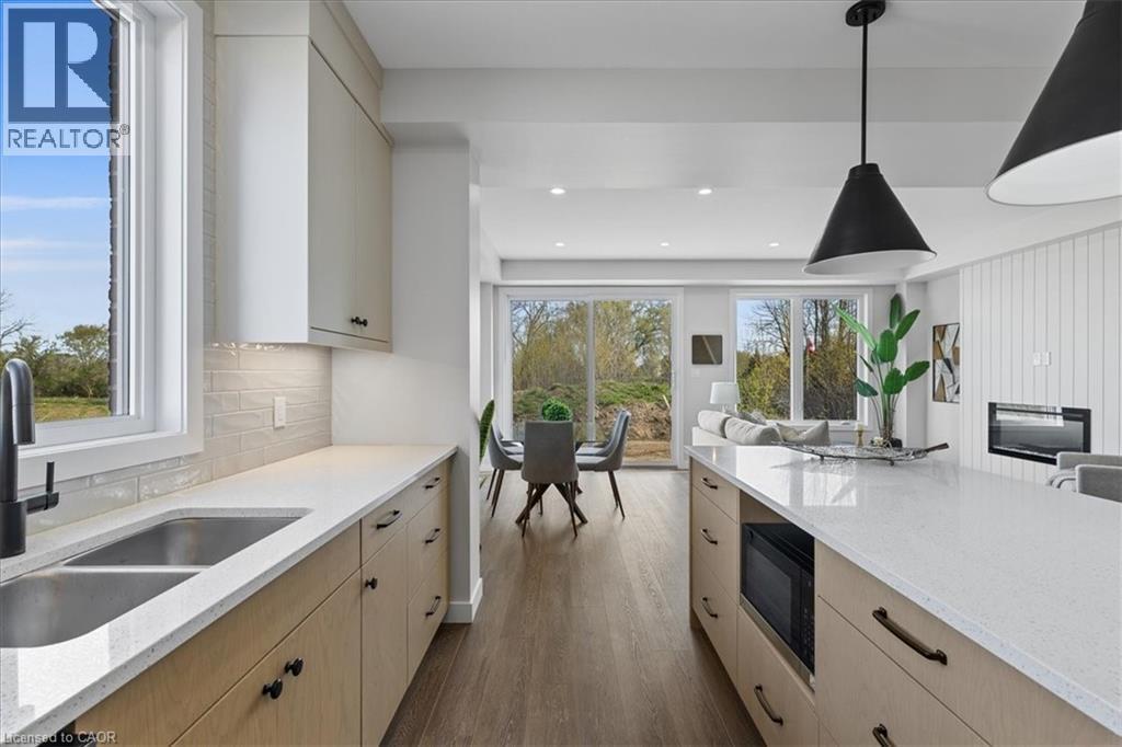 Exceptional value on Premium lot! Welcome to “The Witmer!” Available for immediate occupancy, these classic country semi detached homes offer style, versatility, capacity, and sit on a building lot more than 210’ deep. They offer 1926 square feet of finished space above grade and two stairwells to the basement, one directly from outside. The combination of 9’ main floor ceilings and large windows makes for a bright open space. A beautiful two-tone quality-built kitchen with center island and soft close mechanism sits adjacent to the dining room. The great room occupies the entire back width of the home with coffered ceiling details, and shiplap fireplace feature. LVP flooring spans the entire main level with quartz countertops throughout. The second level offers three spacious bedrooms, laundry, main bathroom with double vanity, and primary bedroom ensuite with double vanity and glass shower. ZONING PERMITS DUPLEXING and the basement design incorporates an efficiently placed mechanical room, bathroom and kitchen rough ins, taking into consideration the potential of a future apartment with a separate entry from the side of the unit. The bonus is they come fully equipped with appliances; 4 STAINLESS STEEL KITCHEN APPLIANCES AND STACKABLE WASHER DRYER already installed. Surrounding the North Thames River, with a historic downtown, rich in heritage, architecture and amenities, and an 18 hole golf course. It’s no wonder so many families have chosen to live in Mitchell; make it your home! (id:51300)