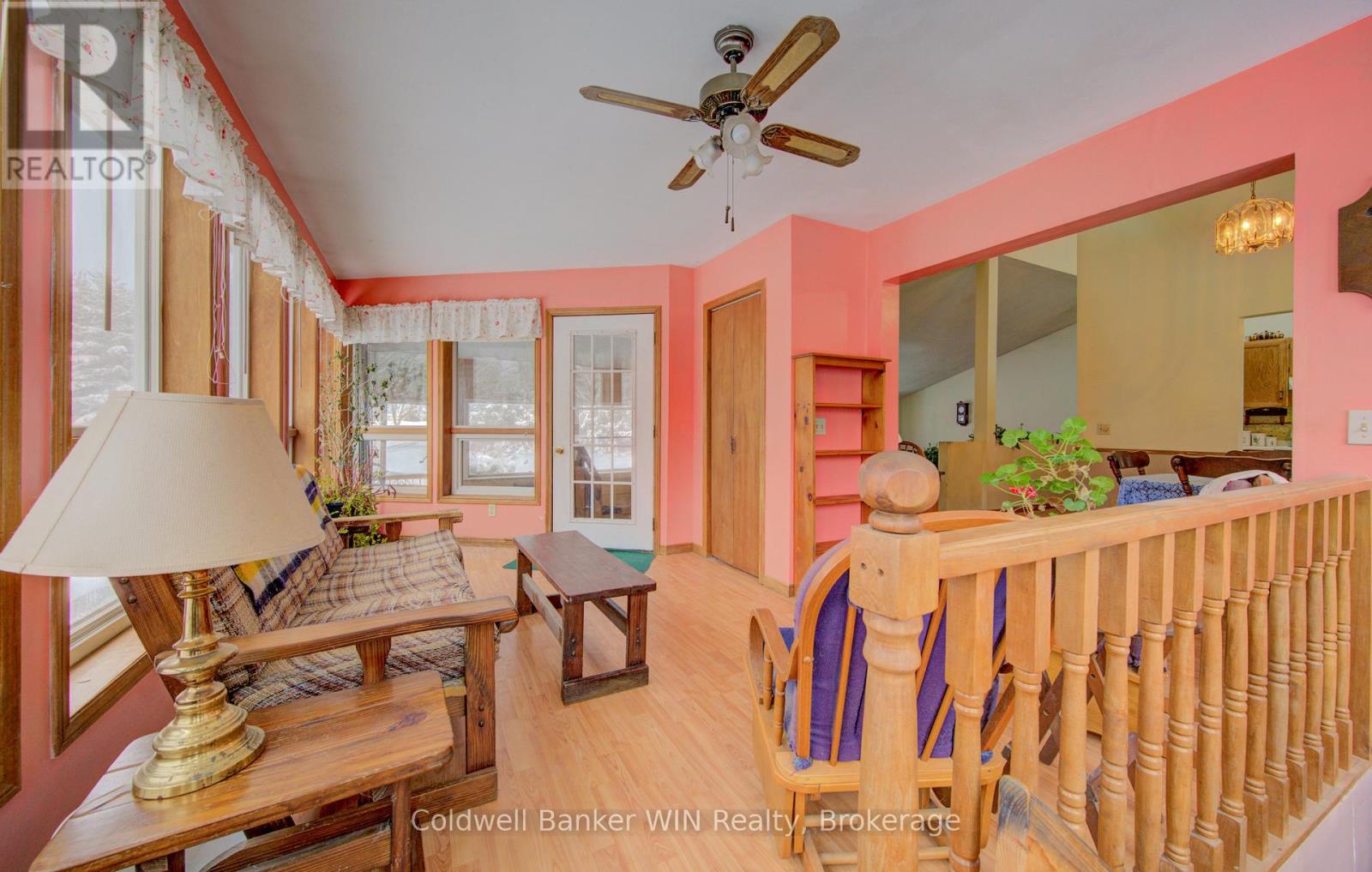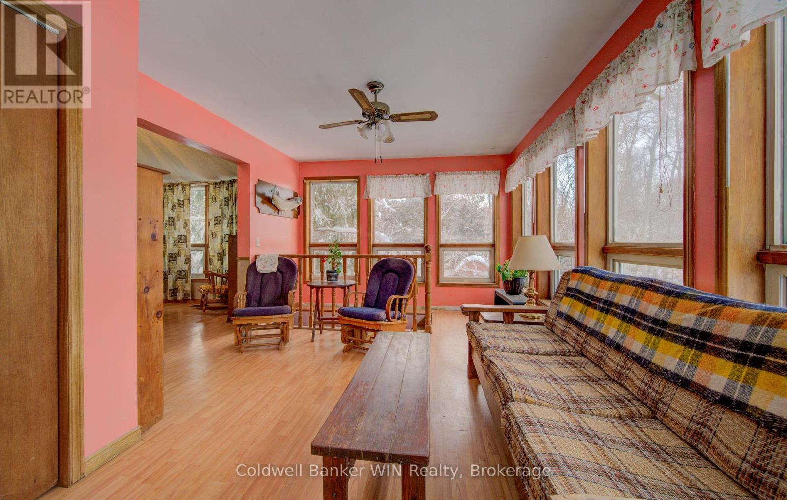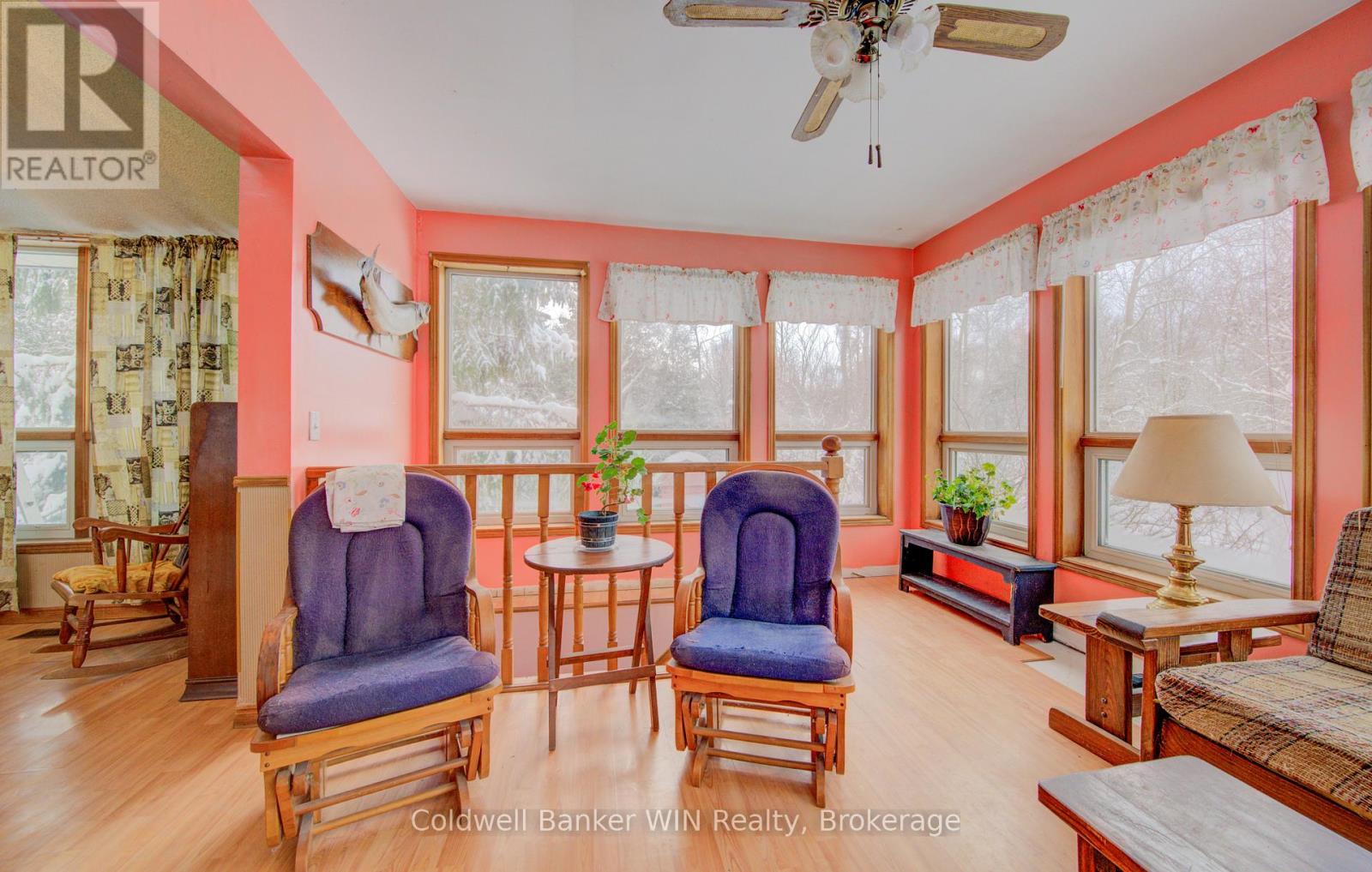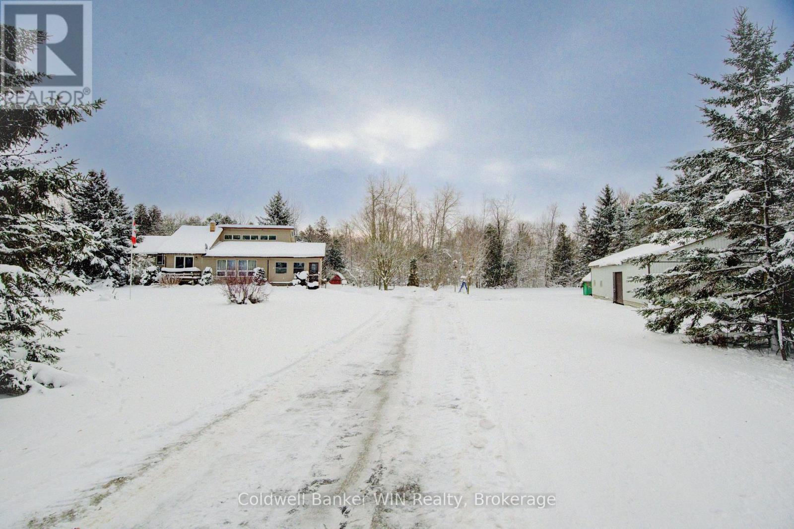 Welcome to 8123 Line 12, Conn; a peaceful 4.5-acre country retreat with year-round privacy which offers room to live the lifestyle you've been dreaming of. This 1990 bungalow offers 3+1 bedrooms, 2 full bathrooms, and a functional layout designed for comfort, views of the property that surrounds it. Step inside to an enclosed front porch, perfect for kicking off your boots. The main floor features a sunken living room, a bright kitchen, and a dining area and sightlines to a charming sunroom, providing a relaxing space to unwind in any season. The primary bedroom includes a spacious walk-in closet and a private 3-piece ensuite. Two additional bedrooms and a full bathroom complete the main level. The walkout basement offers even more living space with a large recreation room that opens directly to the backyard; ideal for gatherings, hobbies, or creating an in-law or guest suite. A fourth bedroom adds flexibility for families or visitors. Outside is where this property truly shines. A paved driveway leads to a detached 30x50 garage/workshop with hydro, perfect for projects, storage, or small-scale hobby farming. The grounds are filled with perennial gardens, productive vegetable beds, and a gorgeous mature Magnolia tree; the ideal spot for picnics or quiet afternoons. Two chicken coops, a garden shed, and the remaining structure of an older hobby barn provide additional utility and rural charm. At the back of the property, approximately half the acreage is beautifully treed, offering an abundance of wildlife, and exceptional privacy. A picturesque stream winds along the rear lot line, enhancing the peaceful ambience. Sheltered from the paved road by a mature tree line, this property offers both convenience and seclusion; an opportunity to enjoy country living at its finest just minutes from Misty Meadows and town amenities. Don't miss your chance to own a serene country escape with space to grow, explore, and create your perfect rural lifestyle. (id:51300)