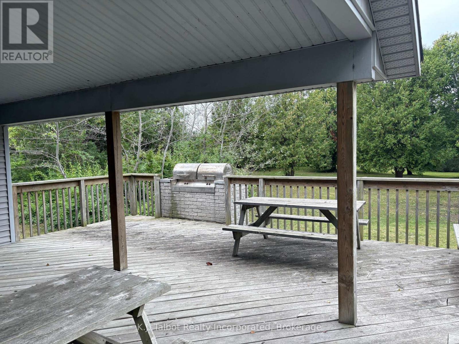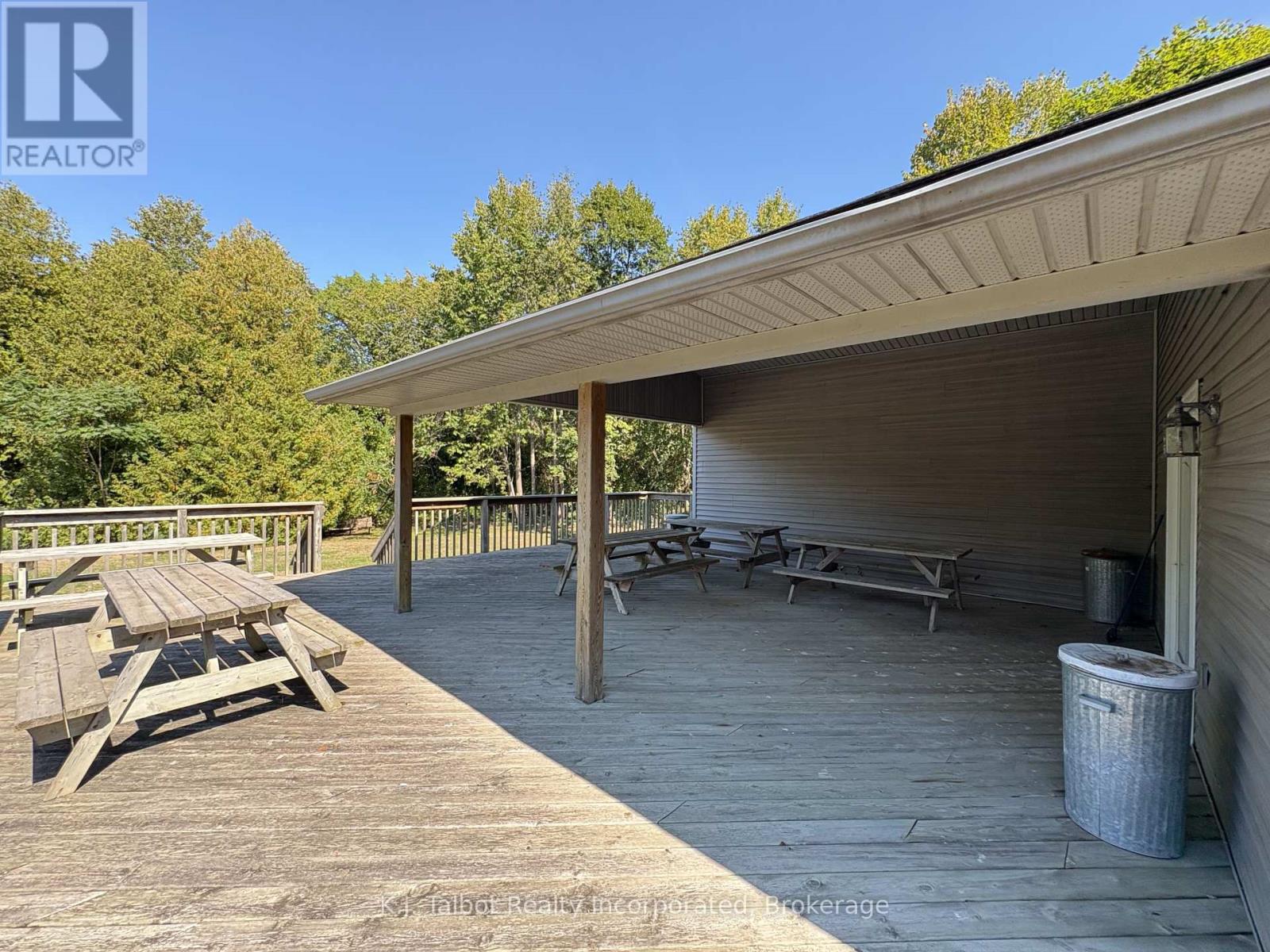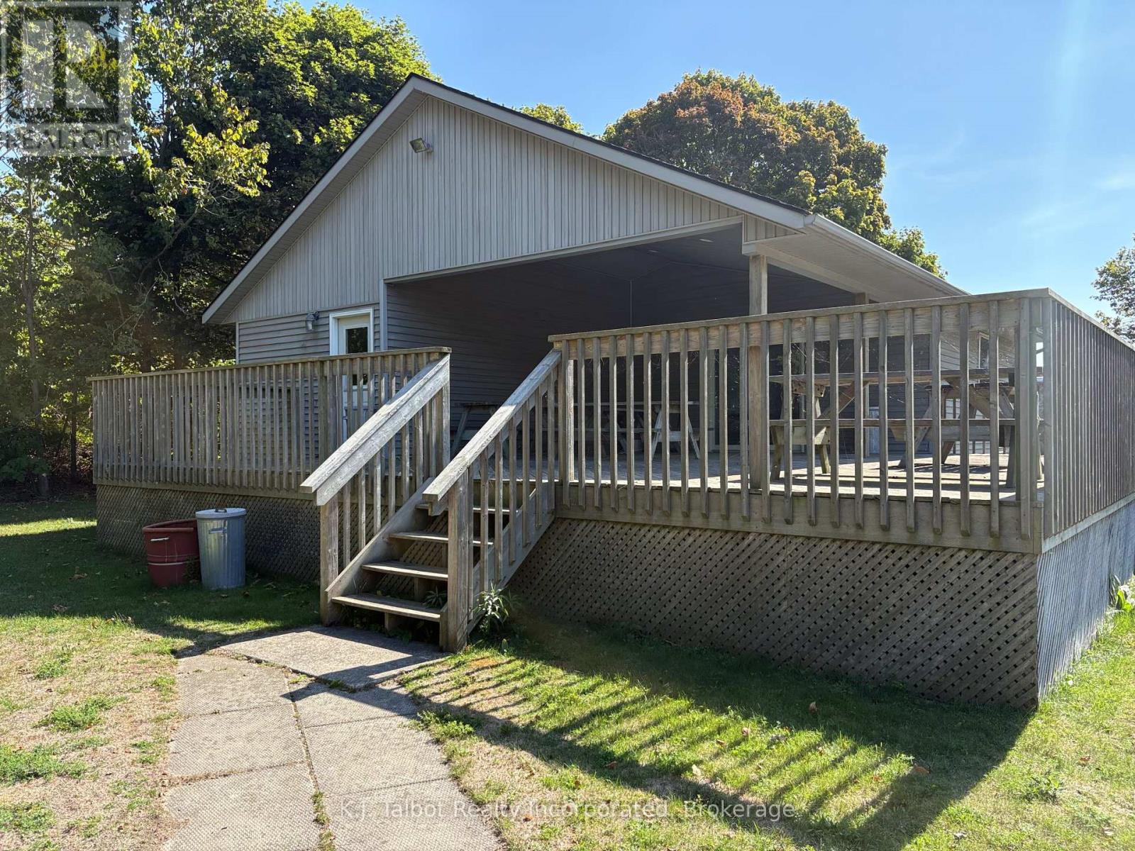 Introducing a unique 13-acre riverfront property close to Goderich, offering picturesque river views and directly adjacent to Lake Huron and to a marina. This serene, mature treed setting features a winterized detached building with significant potential as a cottage, previously utilized as a recreational and community hall. The building's exterior is finished with vinyl siding and aluminum soffit and fascia, complemented by a large covered deck and a dedicated area with built-in BBQs. Inside, the building is insulated and drywalled, boasting a vaulted ceiling with pot lights, and an open-concept great room with an oak kitchenette. Patio doors provide direct access to the covered deck area. The building also includes two 2-piece bathrooms and a utility room equipped with an owned hot water tank, water softener, and pressure tank. The property is serviced by EBB heating, a septic system, and a drilled well. Ample parking is available. Residents will enjoy convenient access to various outdoor activities such as trails, fishing, swimming, canoeing, and kayaking, along with easy access to Goderich's amenities. Please note that this property is accessible by appointment only due to seasonal gated access. (id:51300)