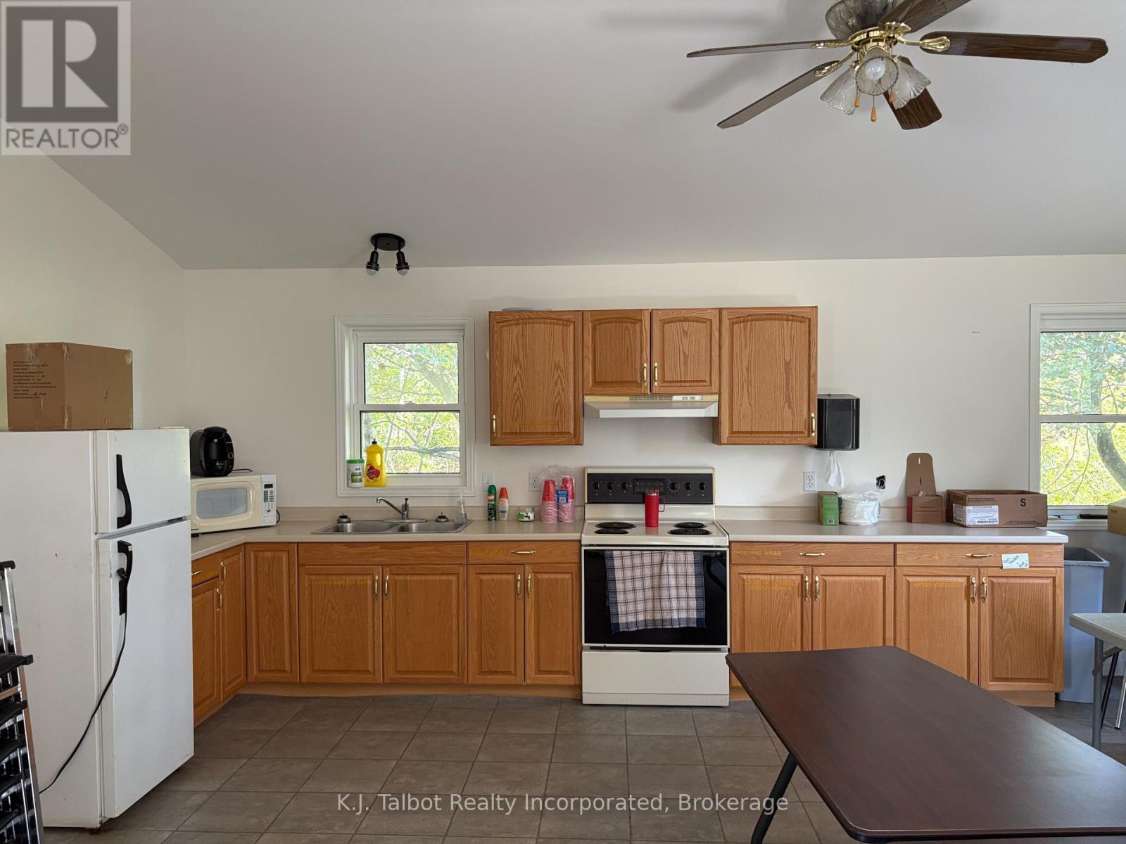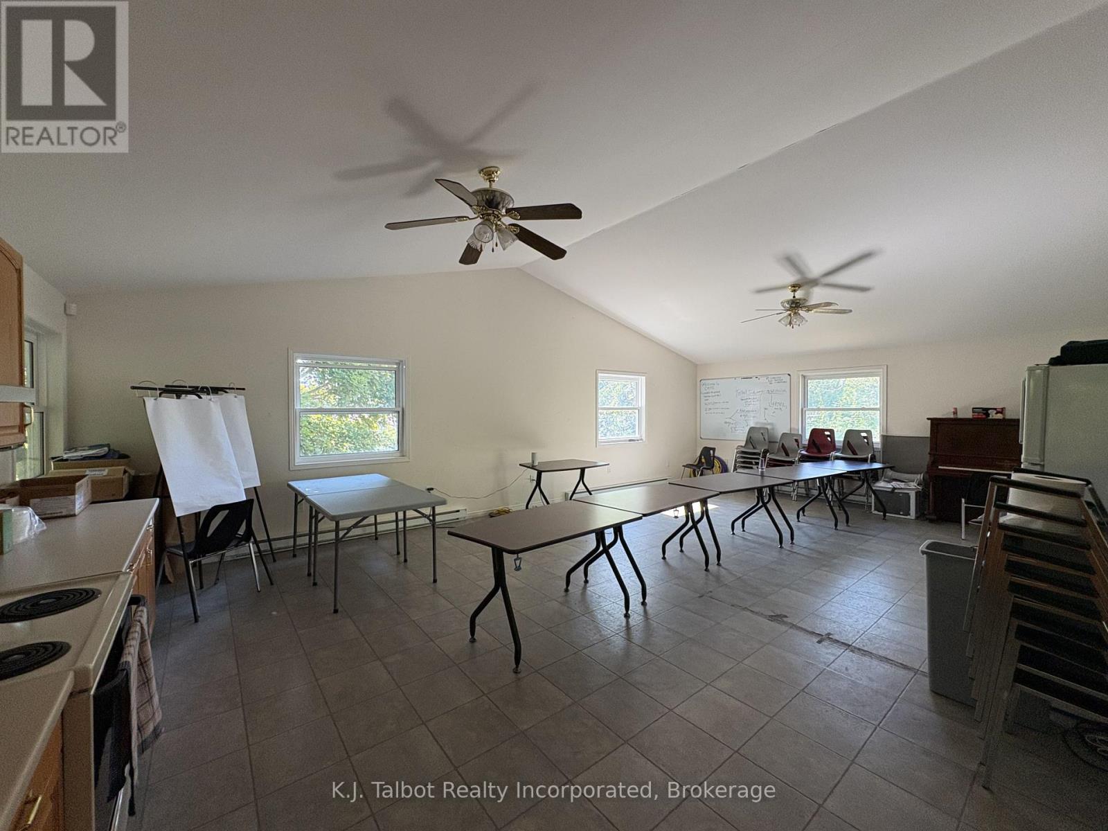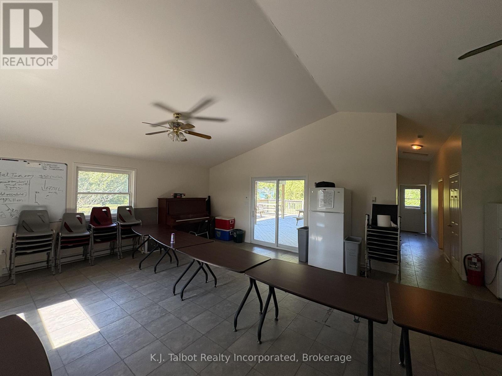 Introducing a unique 13-acre riverfront property close to Goderich, offering picturesque river views and directly adjacent to Lake Huron and to a marina. This serene, mature treed setting features a winterized detached building with significant potential as a cottage, previously utilized as a recreational and community hall. The building's exterior is finished with vinyl siding and aluminum soffit and fascia, complemented by a large covered deck and a dedicated area with built-in BBQs. Inside, the building is insulated and drywalled, boasting a vaulted ceiling with pot lights, and an open-concept great room with an oak kitchenette. Patio doors provide direct access to the covered deck area. The building also includes two 2-piece bathrooms and a utility room equipped with an owned hot water tank, water softener, and pressure tank. The property is serviced by EBB heating, a septic system, and a drilled well. Ample parking is available. Residents will enjoy convenient access to various outdoor activities such as trails, fishing, swimming, canoeing, and kayaking, along with easy access to Goderich's amenities. Please note that this property is accessible by appointment only due to seasonal gated access. (id:51300)