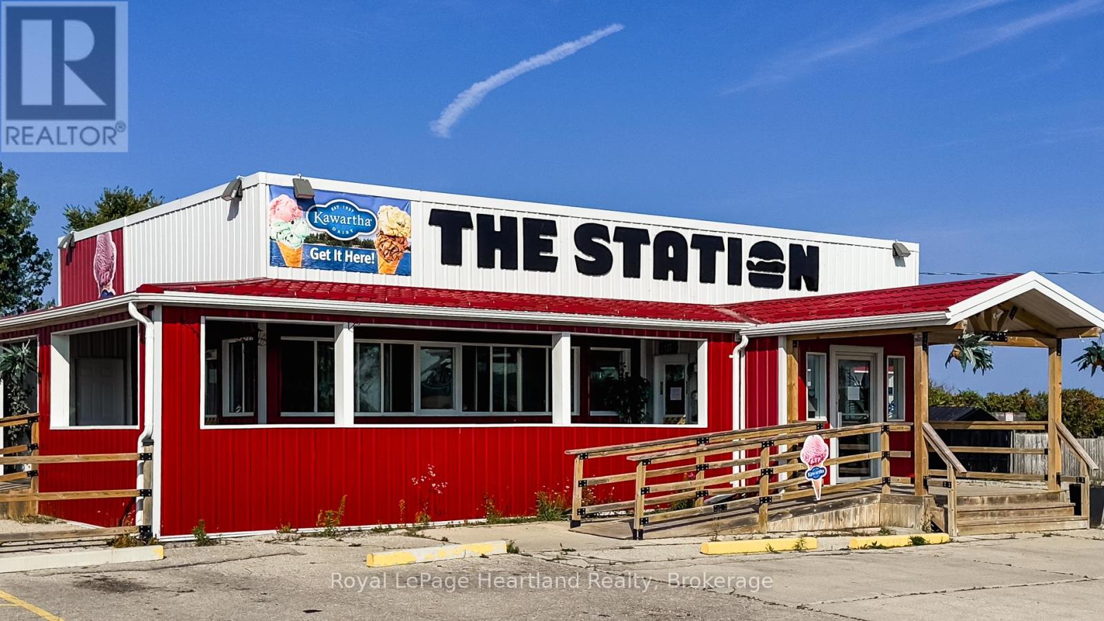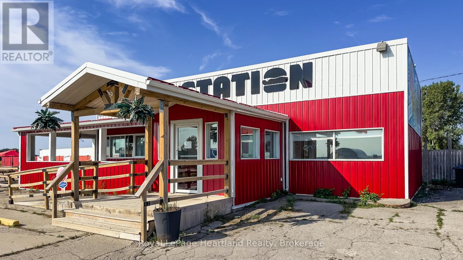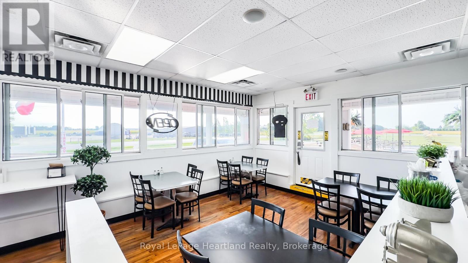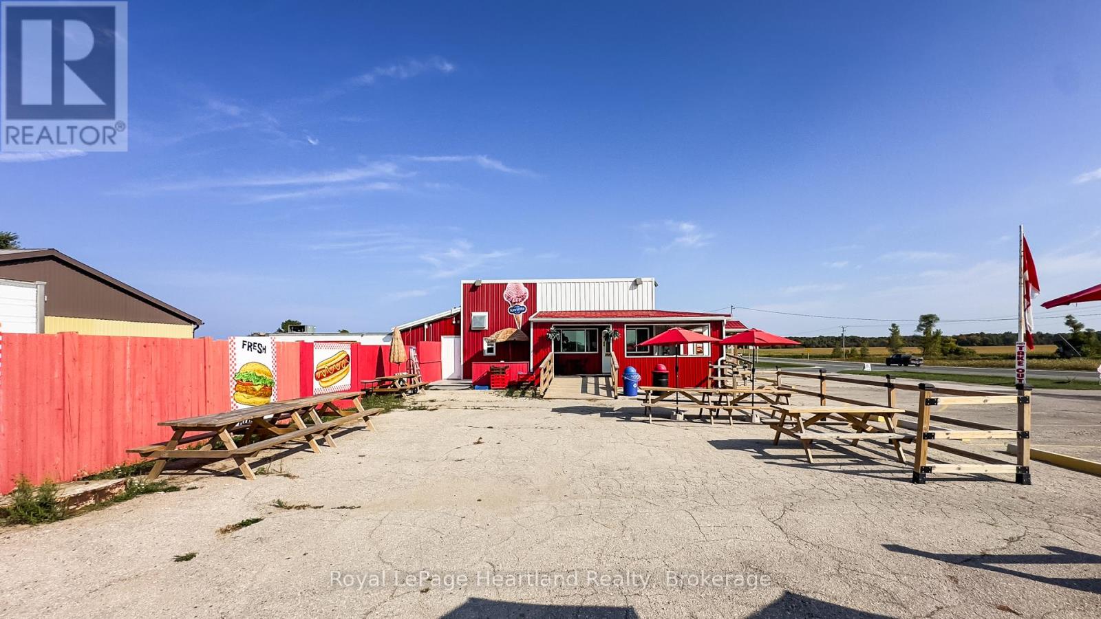 Welcome to The Station, a one-of-a-kind restaurant opportunity located just outside of Goderich, known as Canada's prettiest town. Sitting on 2.87 acres with highway frontage and adjacent to the Goderich Airport, this property is perfectly positioned as a fly-in breakfast and lunch destination while also being just minutes from Lake Huron, Point Farms, and within biking distance to the G2G Trail. Already loved for serving some of the best smash burgers in the area, this spot draws locals, cottagers, and travelers alike. The restaurant offers plenty of seating options with 48 seats inside, 24 on the wrap-around veranda, and another 80 in the outdoor picnic field area. It is fully equipped with an industrial kitchen, prep area, refrigeration, walk-in cooler, POS system, and even an ice cream parlour, providing everything needed to keep operations running seamlessly. Beyond the restaurant, the property includes a 2-bedroom, 1-bath modular home - ideal for living on-site and enjoying the benefits of working from home. There is also a 40' x 60' shed with a concrete floor, gas, and water service, offering additional storage or workspace flexibility. With its prime location, established reputation, and versatile property features, The Station is a rare opportunity to invest in both a thriving business and a lifestyle. (id:51300)