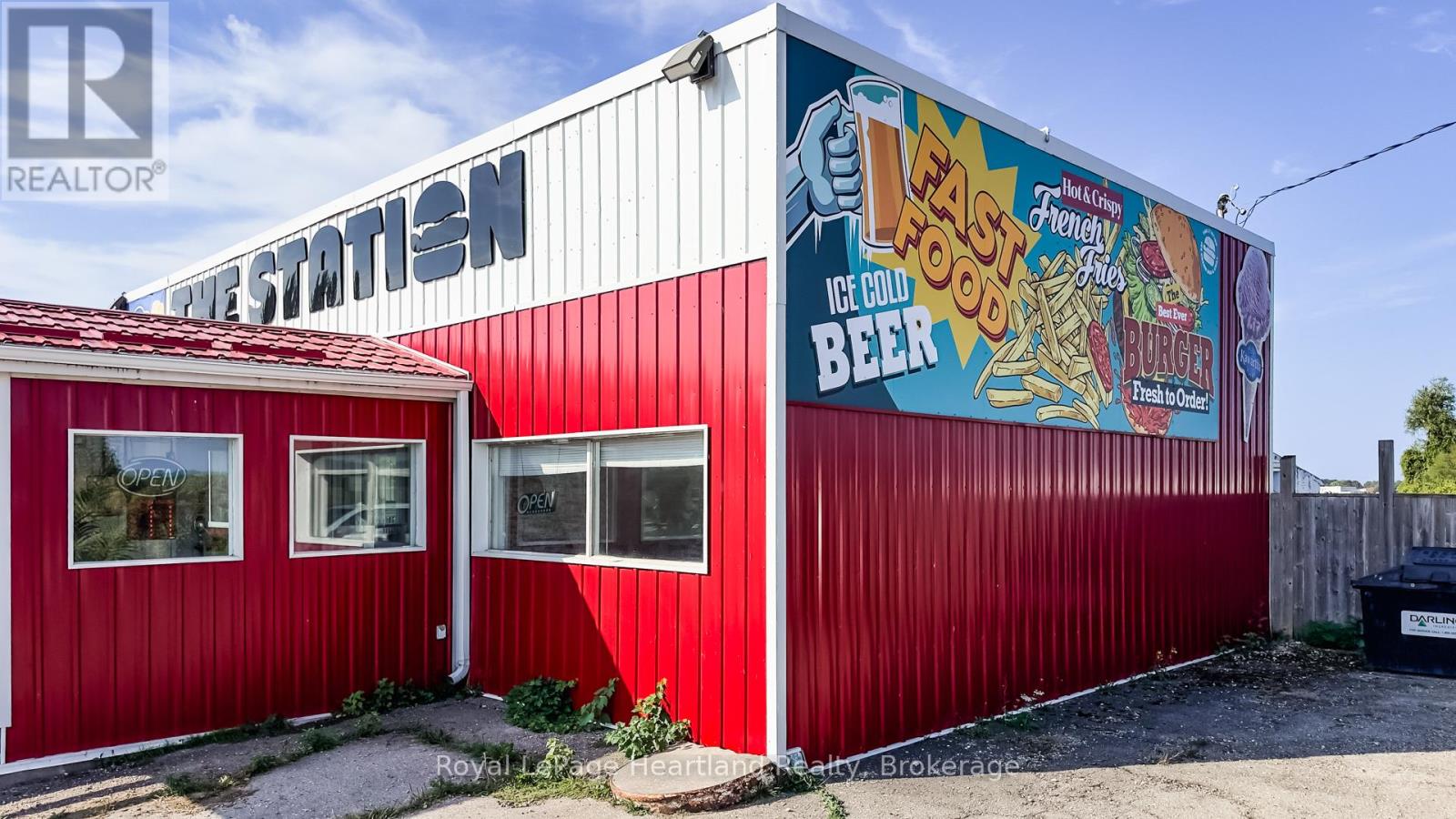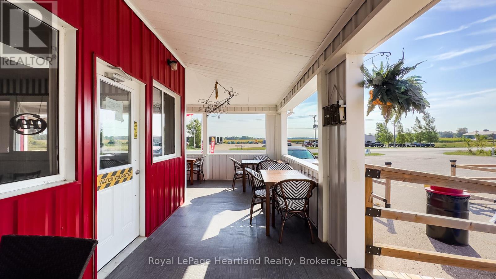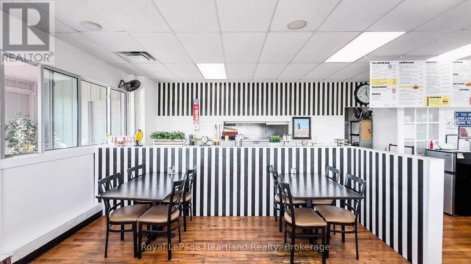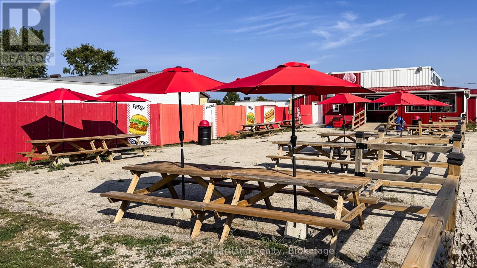 Welcome to The Station, a one-of-a-kind restaurant opportunity located just outside of Goderich, known as Canada's prettiest town. Sitting on 2.87 acres with highway frontage and adjacent to the Goderich Airport, this property is perfectly positioned as a fly-in breakfast and lunch destination while also being just minutes from Lake Huron, Point Farms, and within biking distance to the G2G Trail. Already loved for serving some of the best smash burgers in the area, this spot draws locals, cottagers, and travelers alike. The restaurant offers plenty of seating options with 48 seats inside, 24 on the wrap-around veranda, and another 80 in the outdoor picnic field area. It is fully equipped with an industrial kitchen, prep area, refrigeration, walk-in cooler, POS system, and even an ice cream parlour, providing everything needed to keep operations running seamlessly. Beyond the restaurant, the property includes a 2-bedroom, 1-bath modular home - ideal for living on-site and enjoying the benefits of working from home. There is also a 40' x 60' shed with a concrete floor, gas, and water service, offering additional storage or workspace flexibility. With its prime location, established reputation, and versatile property features, The Station is a rare opportunity to invest in both a thriving business and a lifestyle. (id:51300)