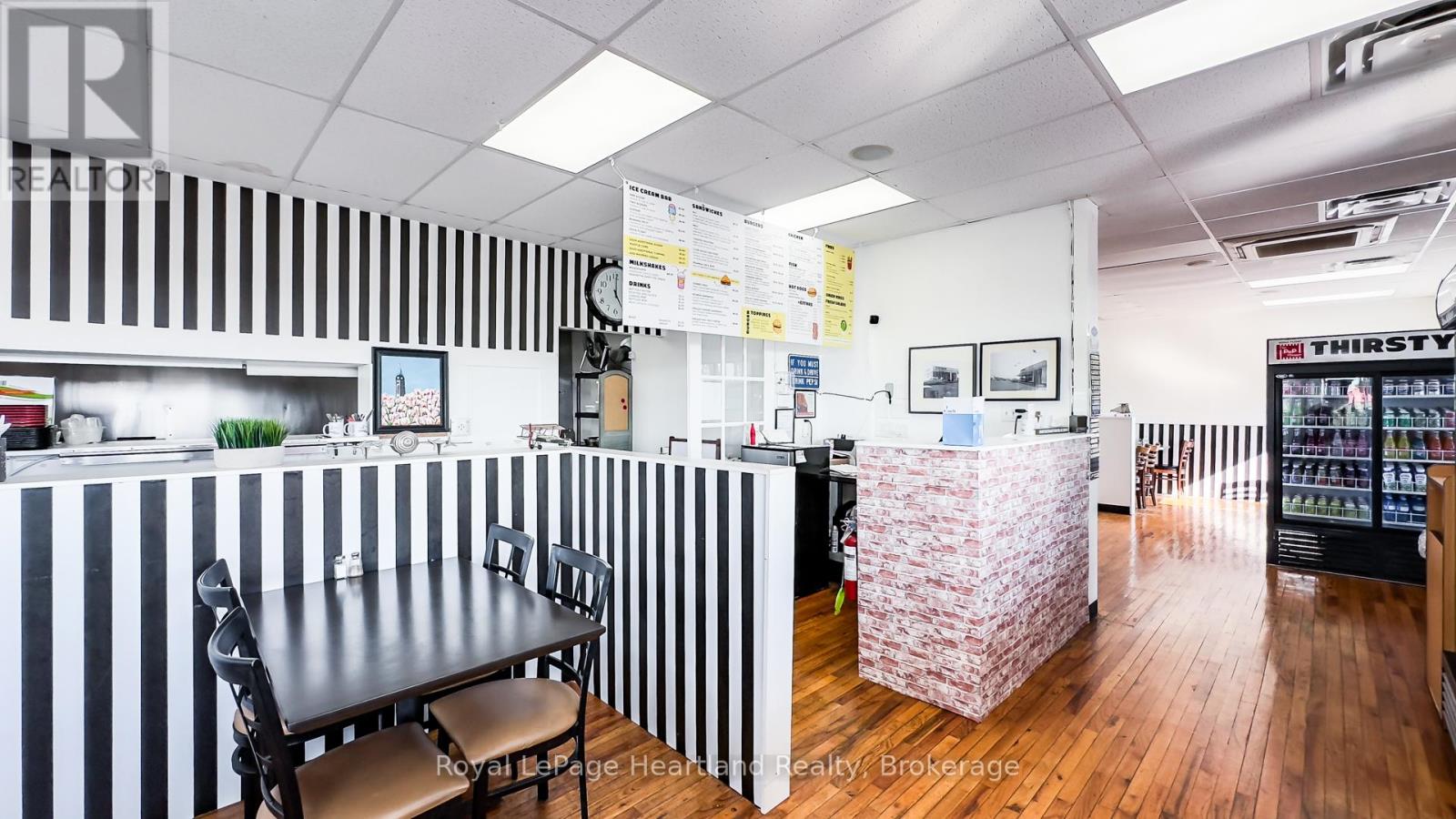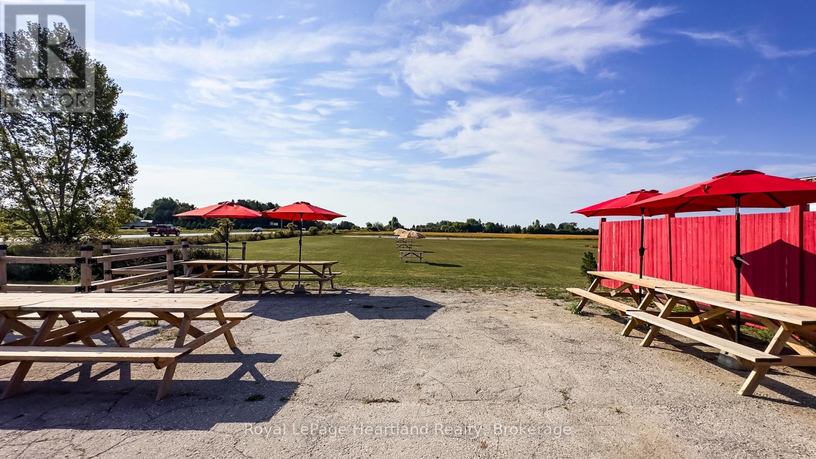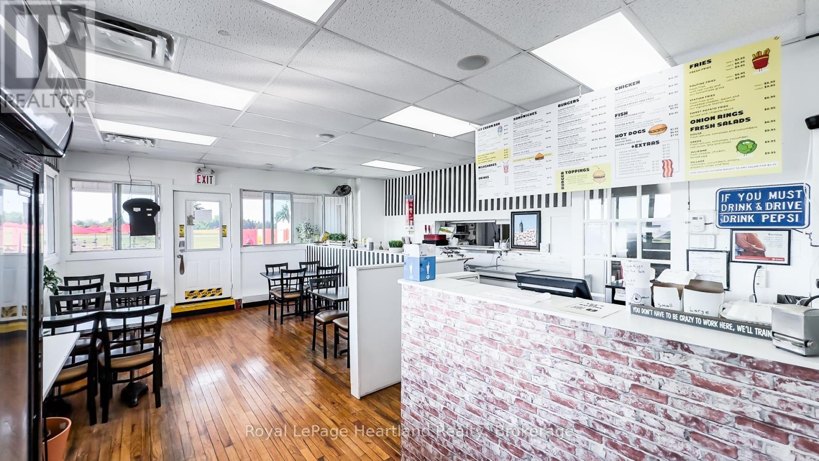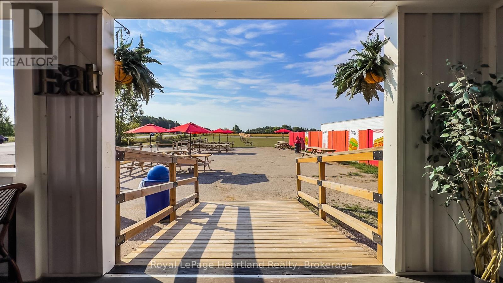 Welcome to The Station, a one-of-a-kind restaurant opportunity located just outside of Goderich, known as Canada's prettiest town. Sitting on 2.87 acres with highway frontage and adjacent to the Goderich Airport, this property is perfectly positioned as a fly-in breakfast and lunch destination while also being just minutes from Lake Huron, Point Farms, and within biking distance to the G2G Trail. Already loved for serving some of the best smash burgers in the area, this spot draws locals, cottagers, and travelers alike. The restaurant offers plenty of seating options with 48 seats inside, 24 on the wrap-around veranda, and another 80 in the outdoor picnic field area. It is fully equipped with an industrial kitchen, prep area, refrigeration, walk-in cooler, POS system, and even an ice cream parlour, providing everything needed to keep operations running seamlessly. Beyond the restaurant, the property includes a 2-bedroom, 1-bath modular home - ideal for living on-site and enjoying the benefits of working from home. There is also a 40' x 60' shed with a concrete floor, gas, and water service, offering additional storage or workspace flexibility. With its prime location, established reputation, and versatile property features, The Station is a rare opportunity to invest in both a thriving business and a lifestyle. (id:51300)