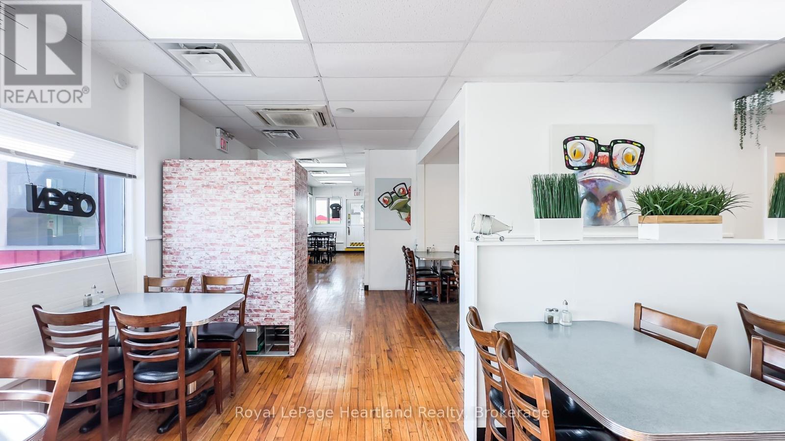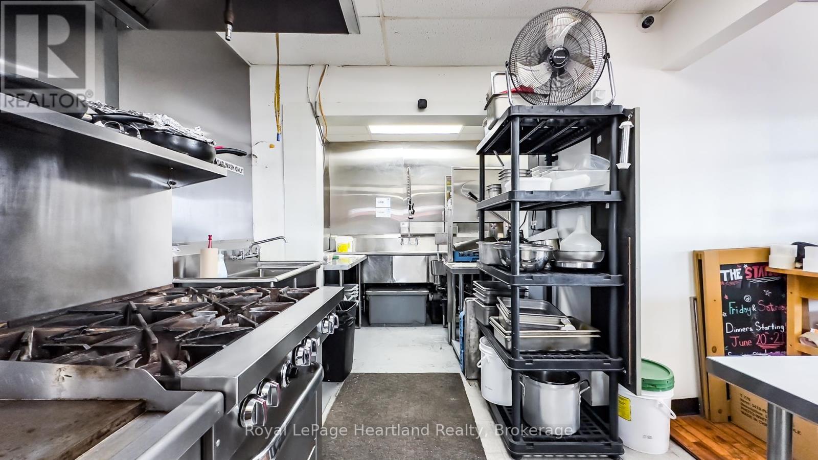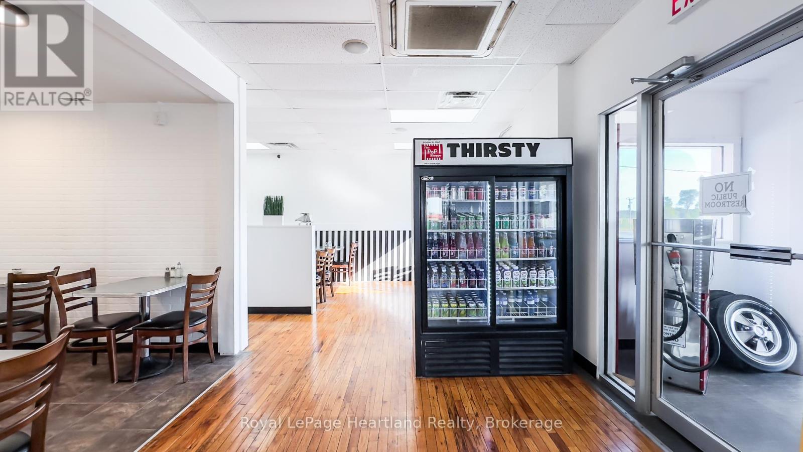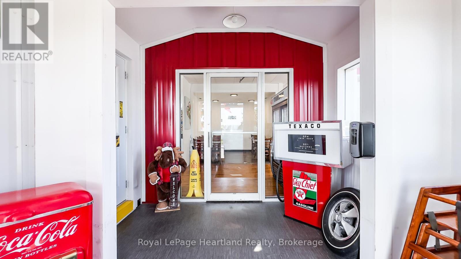 Welcome to The Station, a one-of-a-kind restaurant opportunity located just outside of Goderich, known as Canada's prettiest town. Sitting on 2.87 acres with highway frontage and adjacent to the Goderich Airport, this property is perfectly positioned as a fly-in breakfast and lunch destination while also being just minutes from Lake Huron, Point Farms, and within biking distance to the G2G Trail. Already loved for serving some of the best smash burgers in the area, this spot draws locals, cottagers, and travelers alike. The restaurant offers plenty of seating options with 48 seats inside, 24 on the wrap-around veranda, and another 80 in the outdoor picnic field area. It is fully equipped with an industrial kitchen, prep area, refrigeration, walk-in cooler, POS system, and even an ice cream parlour, providing everything needed to keep operations running seamlessly. Beyond the restaurant, the property includes a 2-bedroom, 1-bath modular home - ideal for living on-site and enjoying the benefits of working from home. There is also a 40' x 60' shed with a concrete floor, gas, and water service, offering additional storage or workspace flexibility. With its prime location, established reputation, and versatile property features, The Station is a rare opportunity to invest in both a thriving business and a lifestyle. (id:51300)