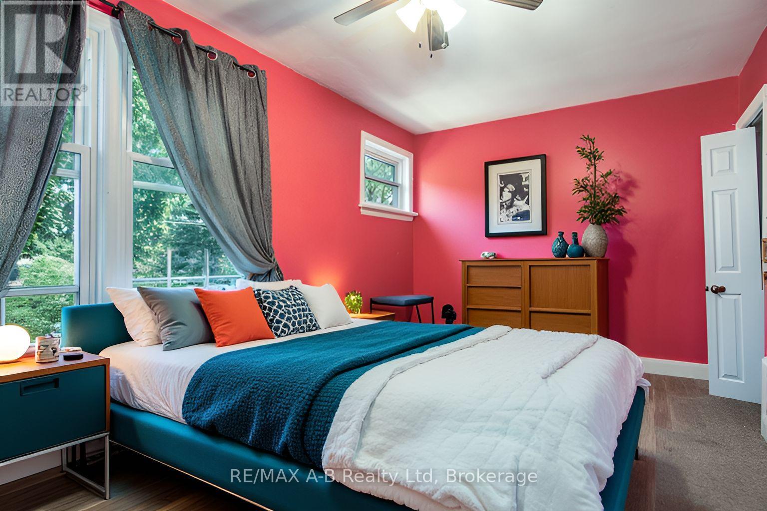 Welcome to this charming 2.5-story semi-detached home. This residence offers a perfect blend of character and contemporary convenience, making it an ideal choice for single- or multigenerational families seeking a comfortable and stylish living space. Spacious living area provides ample room for relaxation and entertainment, ensuring a seamless blend of classic charm and modern amenities. The large backyard is an open canvas that offers numerous possibilities for creating a functional and beautiful outdoor space. Walk-up attic,currently unfinished, offers extra potential living space. Lots of storage space in the basement offers the opportunity to transform it into your vision. The home comes with all essential appliances included, adding extra value and convenience. Nestled in a desirable neighborhood, close to schools, parks, shopping, and public transit, offering an unbeatable location for everyday living. A perfect opportunity in the thriving Stratford market, renowned for its vibrant theatre scene, the Avon River, and just 5 minutes from beautiful Lake Victoria at the heart of the city. Some of the photos are AI staged. (id:51300)