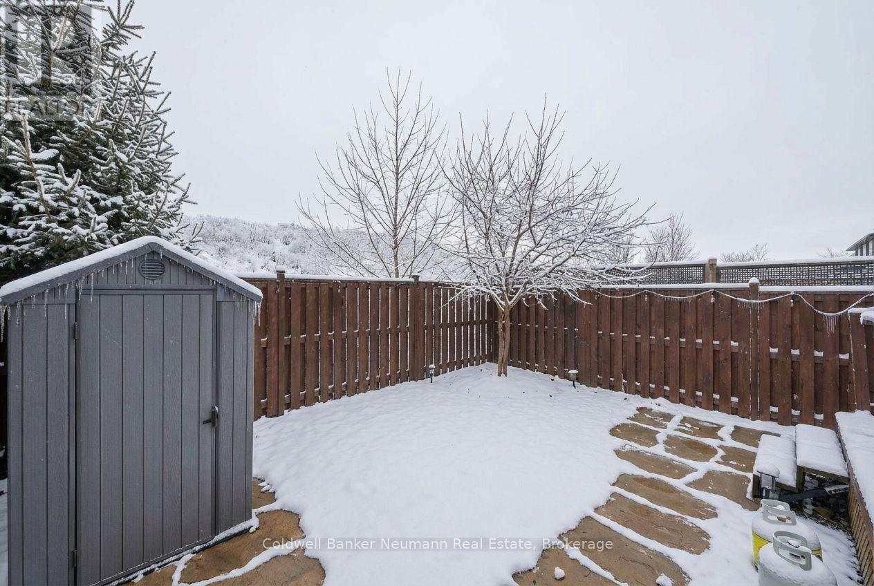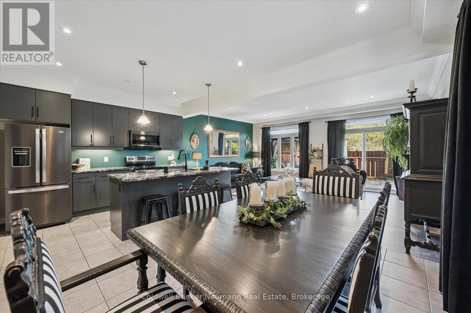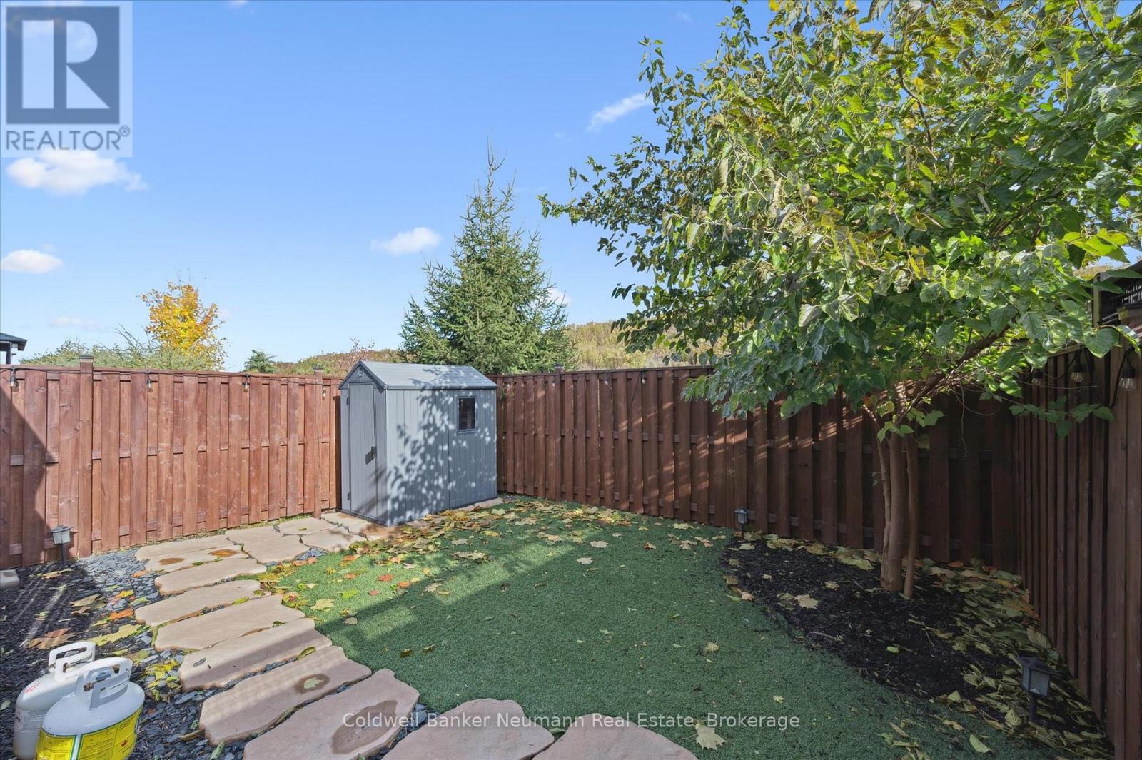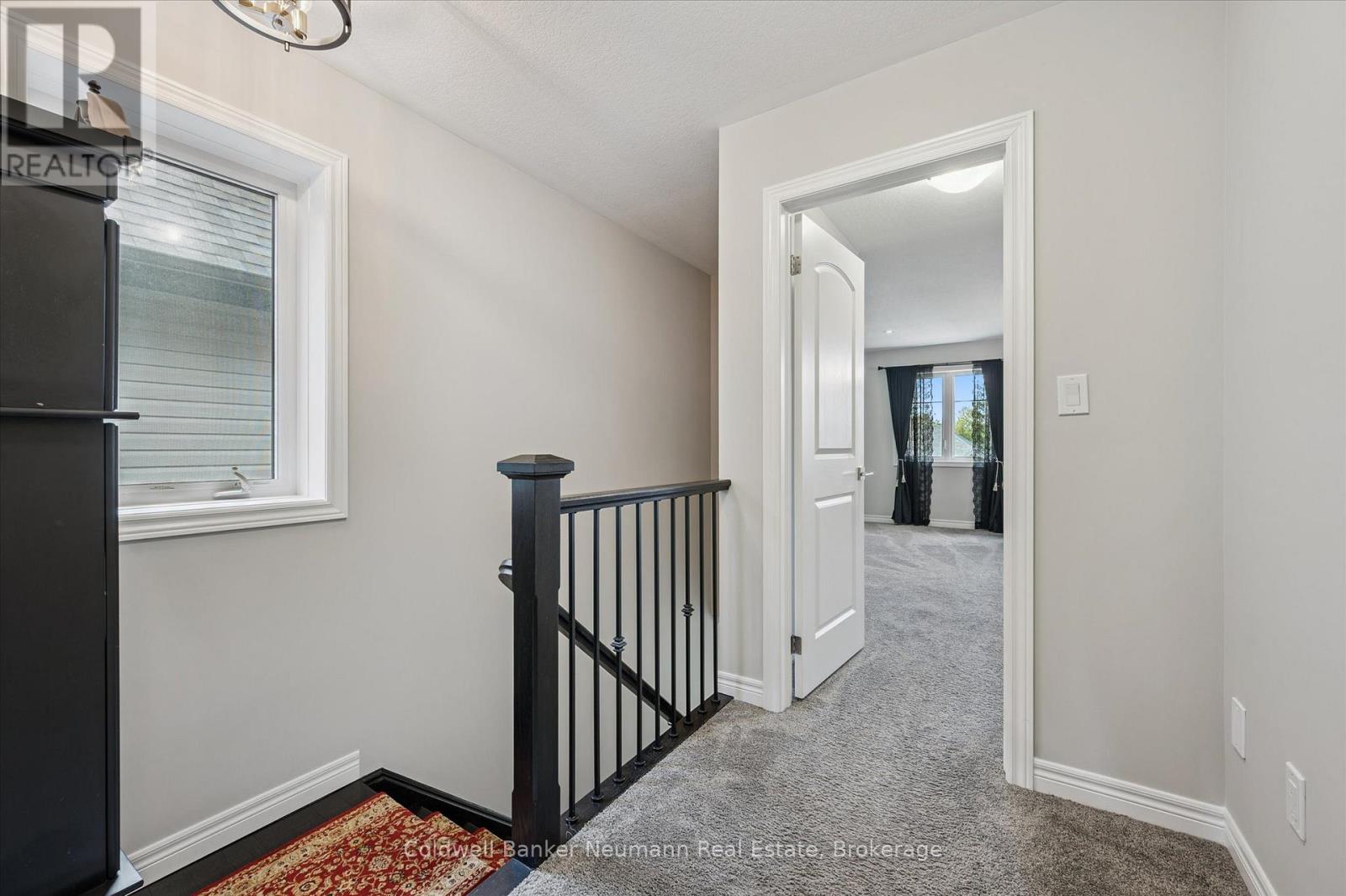 Welcome to 84 Cutting Drive: an upgraded FREEHOLD semi-detached home just steps from the Cataract Trail and walking distance to downtown Elora's historic shops and restaurants. Built by award-winning Finoro Homes, this property's main floor features 9ft+ crown-moulding ceilings, carpet-free flooring, upgraded lighting, granite countertops, and a custom-built-in fireplace. Additional features include upgraded exterior lighting, hardwired security cameras, upgraded checkered garage flooring, a reverse osmosis system, and direct garage access from the main floor. Sliding doors lead to a spacious walkout deck overlooking a fully-fenced, landscaped backyard with low-maintenance turf. Upstairs offers an impressive primary suite with a cathedral ceiling, walk-in closet and ensuite, plus two additional bedrooms, a guest bath, and upper-level laundry. The open unfinished lower level offers great potential, featuring an existing rough-in ready for a future basement apartment or simply additional finished space. Only minutes to downtown Elora and a 7-minute drive from Fergus, this home is an excellent turn-key opportunity for first-time buyers or families seeking a newer build in a beautiful neighbourhood. (id:51300)