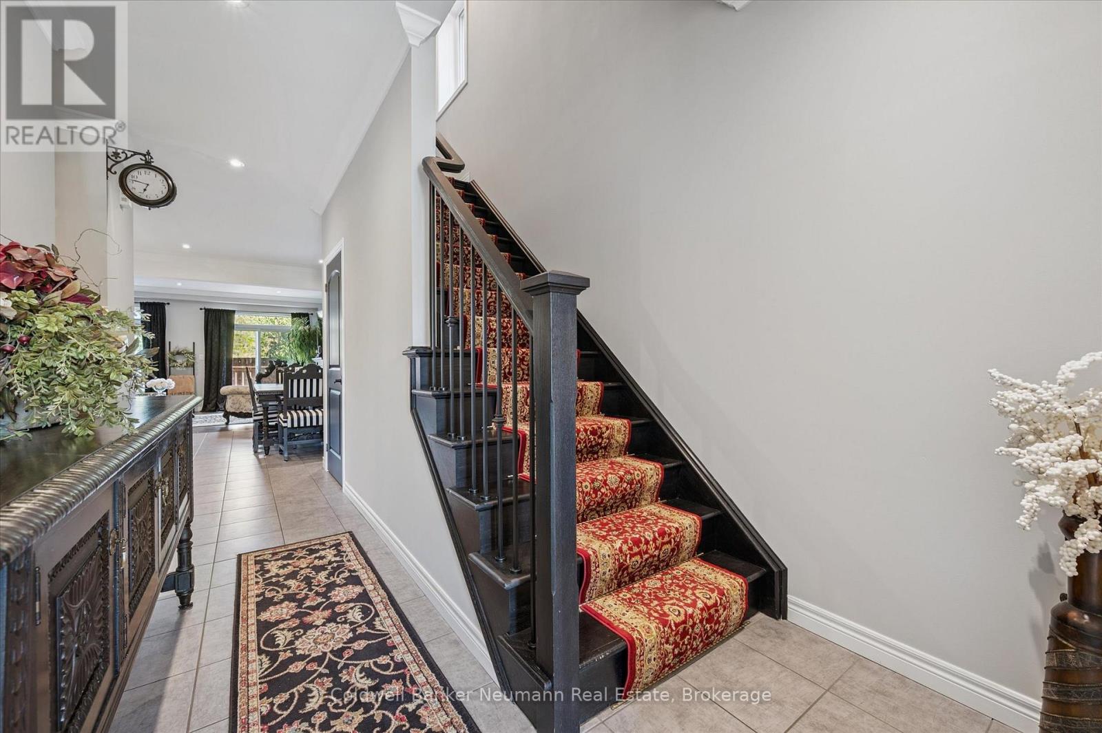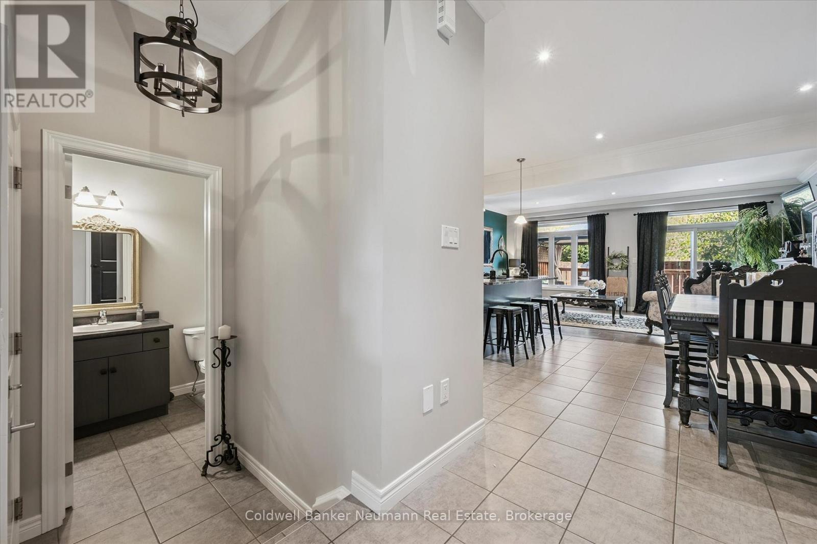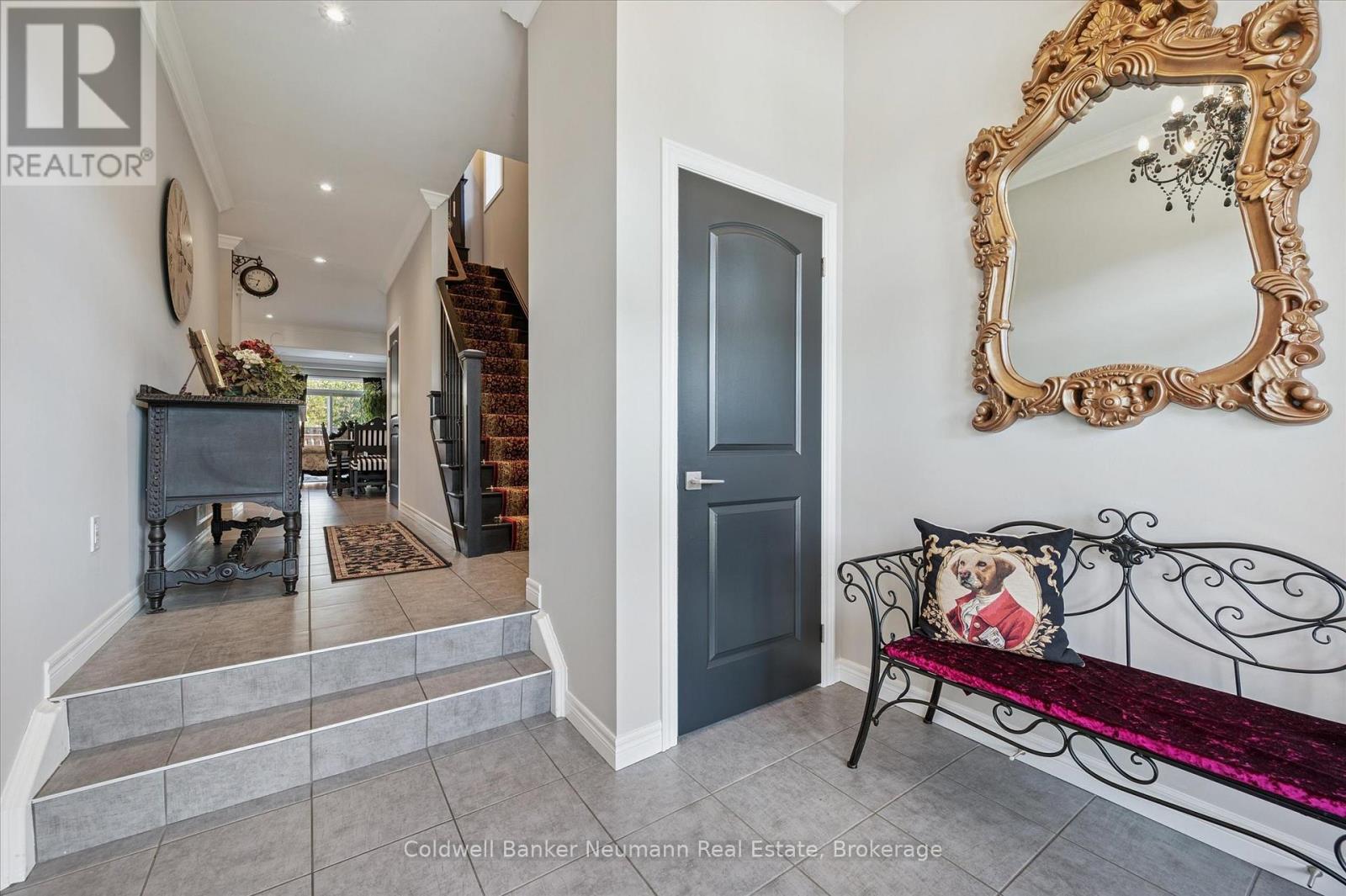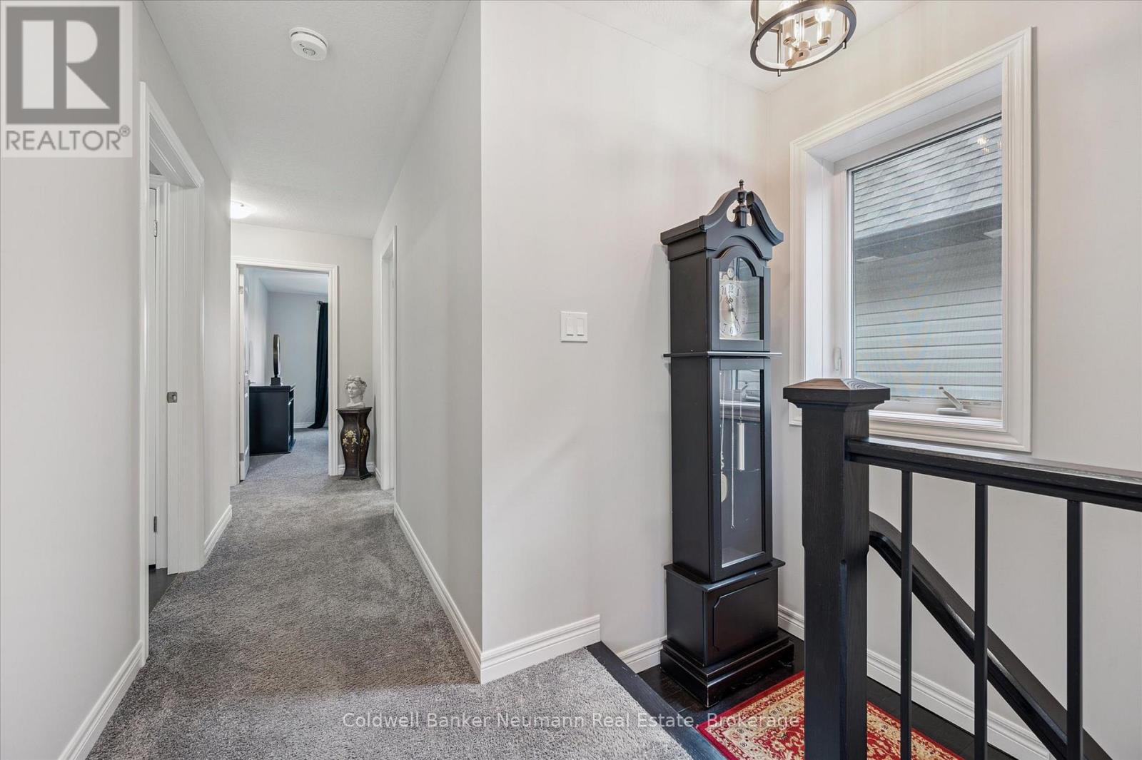Welcome to 84 Cutting Drive: an upgraded FREEHOLD semi-detached home just steps from the Cataract Trail and walking distance to downtown Elora's historic shops and restaurants. Built by award-winning Finoro Homes, this property's main floor features 9ft+ crown-moulding ceilings, carpet-free flooring, upgraded lighting, granite countertops, and a custom-built-in fireplace. Additional features include upgraded exterior lighting, hardwired security cameras, upgraded checkered garage flooring, a reverse osmosis system, and direct garage access from the main floor. Sliding doors lead to a spacious walkout deck overlooking a fully-fenced, landscaped backyard with low-maintenance turf. Upstairs offers an impressive primary suite with a cathedral ceiling, walk-in closet and ensuite, plus two additional bedrooms, a guest bath, and upper-level laundry. The open unfinished lower level offers great potential, featuring an existing rough-in ready for a future basement apartment or simply additional finished space. Only minutes to downtown Elora and a 7-minute drive from Fergus, this home is an excellent turn-key opportunity for first-time buyers or families seeking a newer build in a beautiful neighbourhood. (id:51300)