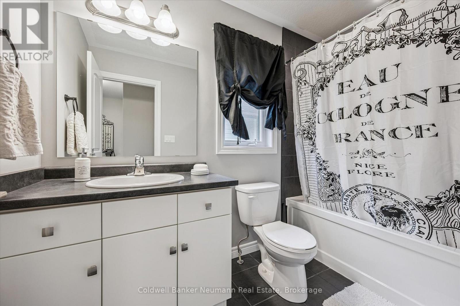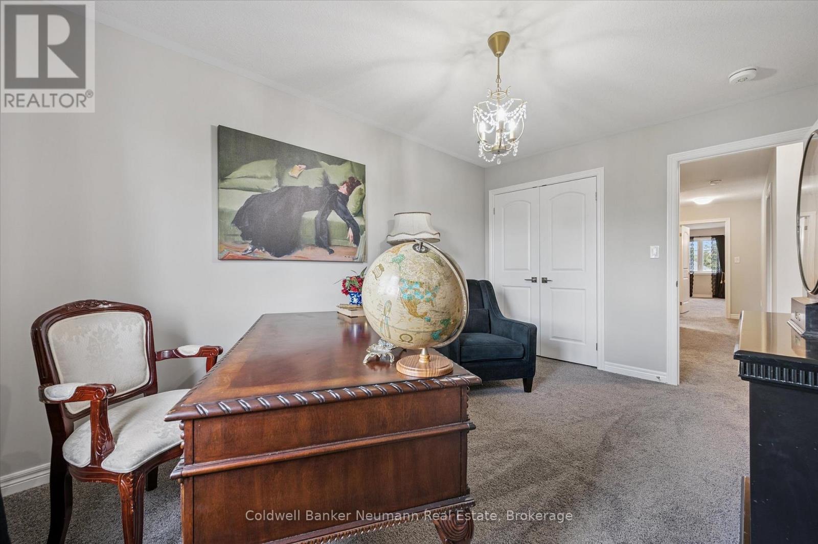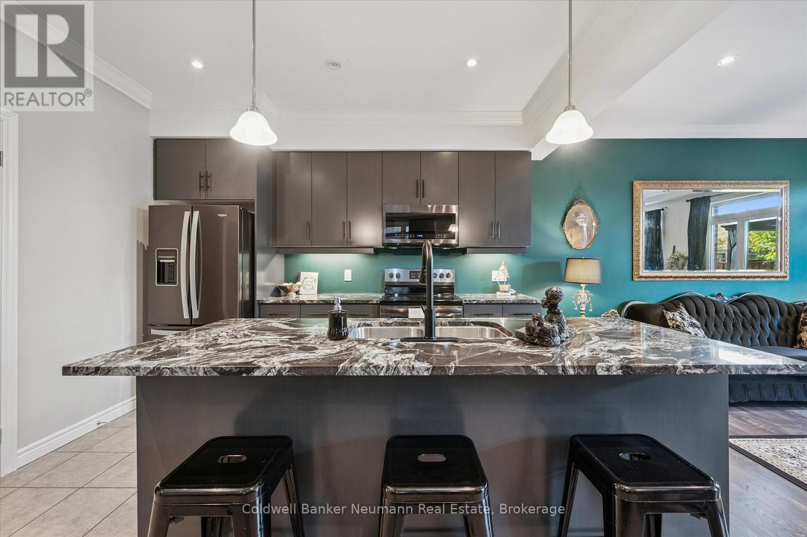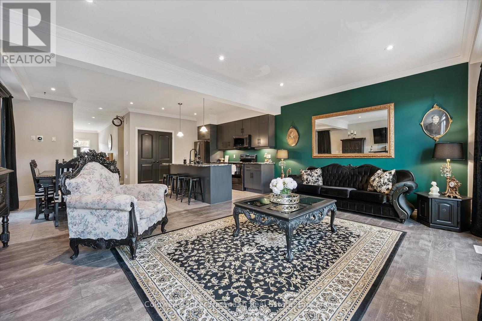 Welcome to 84 Cutting Drive: an upgraded FREEHOLD semi-detached home just steps from the Cataract Trail and walking distance to downtown Elora's historic shops and restaurants. Built by award-winning Finoro Homes, this property's main floor features 9ft+ crown-moulding ceilings, carpet-free flooring, upgraded lighting, granite countertops, and a custom-built-in fireplace. Additional features include upgraded exterior lighting, hardwired security cameras, upgraded checkered garage flooring, a reverse osmosis system, and direct garage access from the main floor. Sliding doors lead to a spacious walkout deck overlooking a fully-fenced, landscaped backyard with low-maintenance turf. Upstairs offers an impressive primary suite with a cathedral ceiling, walk-in closet and ensuite, plus two additional bedrooms, a guest bath, and upper-level laundry. The open unfinished lower level offers great potential, featuring an existing rough-in ready for a future basement apartment or simply additional finished space. Only minutes to downtown Elora and a 7-minute drive from Fergus, this home is an excellent turn-key opportunity for first-time buyers or families seeking a newer build in a beautiful neighbourhood. (id:51300)