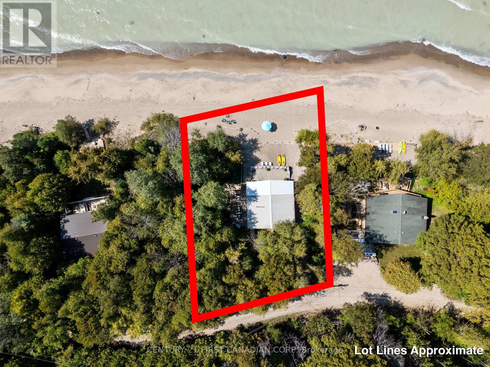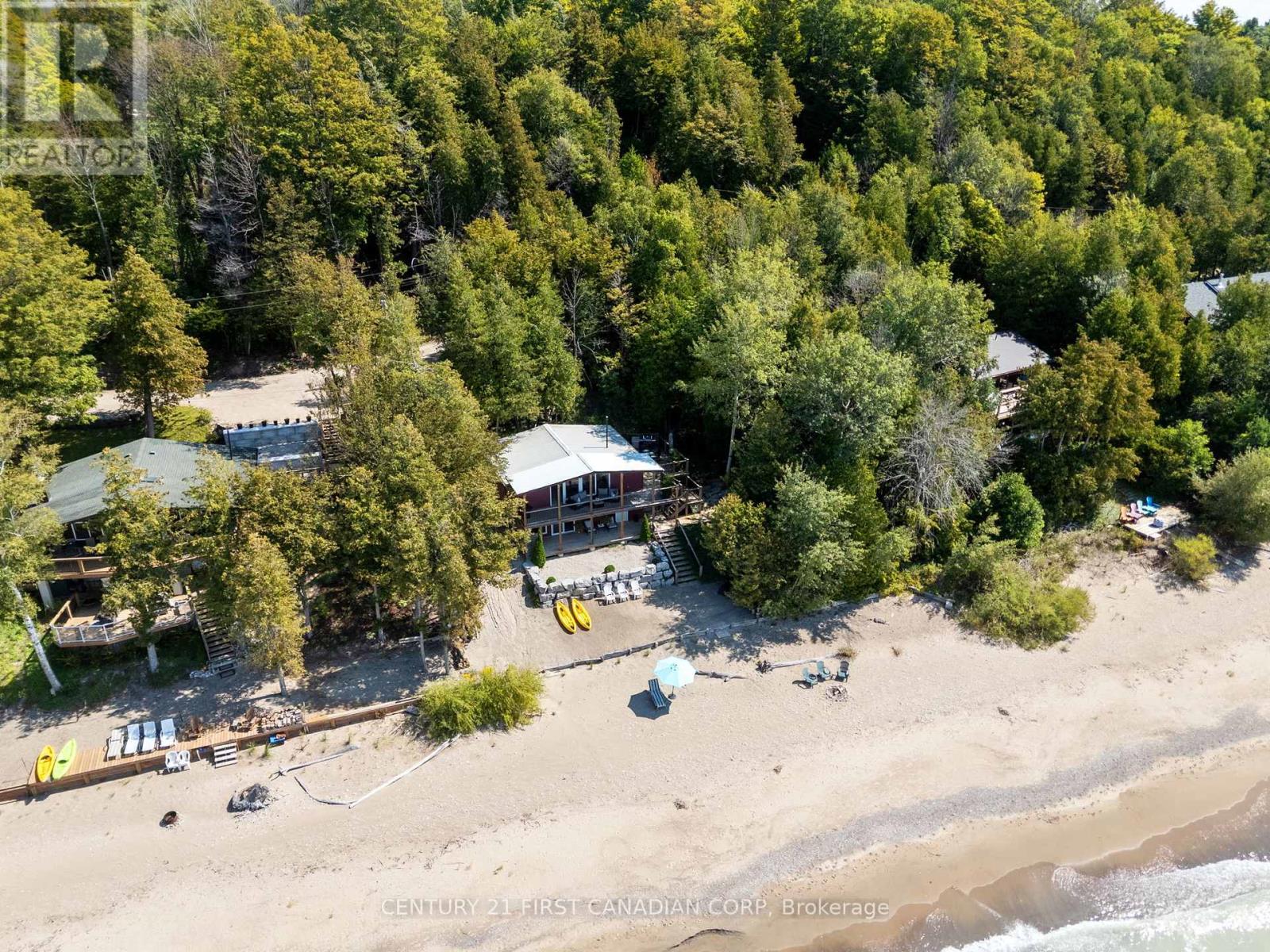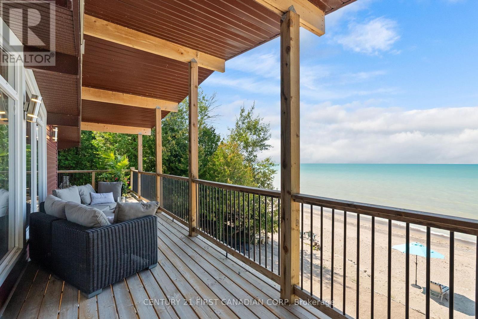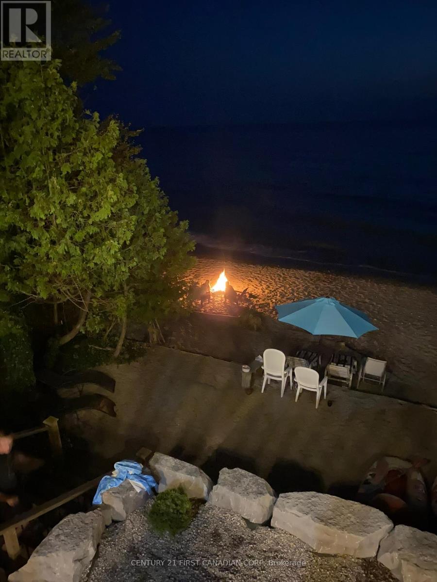 SAND, SERENITY AND SUNSETS - THIS IS LAKE LIFE AT ITS FINEST... HEAR THE WAVES! Nestled just north of Goderich in the coveted LAKELAND ESTATES, this virtually lake-level cottage with BIG 110' lake frontage offers direct access to one of the area's widest, most walkable/unimpeded sandy beaches. No stairs, no cliffs-just pure shoreline magic. Step inside this bright and beautifully updated 3+bedroom, 1.5-bath retreat and feel the charm of authentic cottage living. The open-concept kitchen and living room flow seamlessly onto a spacious lake-facing deck, while the lower level offers a second finished living area and its own panoramic deck-perfect for entertaining or unwinding with a glass of wine as the sun dips below the horizon. Features You'll Love: Two expansive decks with unobstructed lake views, Wall of windows in the main living/dining area & lower level, New studio den (2022) and new basement bedroom (2023), Wraparound decking, new staircase (2020), and armour stone landscaping, Cedar outdoor rain shower on lakefront deck... it's a beauty! Private laneway to drive boat/beach gear directly to the shore, Turnkey sale includes kayaks, life jackets, TV, beds, appliances, Weber BBQ & more, Lots of privacy with forest south and trees area on north, and very low traffic on the beach throughout all seasons, Outdoor stone fireplace on separate deck overlooking own forest and lake, a great shaded area to cool down during peak summer days, New well installed in 2025. New sewage tank fully inspected by Municipality, passed in 2025, Metal roof with many years of life, Best-in-class Lake Huron living with direct access to the water. Main renovation done in 2017 that included new decks, plumbing and electrical. Private driveway with parking for 3/4 cars. 21'x10' utility room. Low Maintenance cottage with no grass cutting, low complexity and efficient water/sewage/heating system! Unbeatable value-priced below comparable 'on bluff' resales and leading its category in the area! (id:51300)