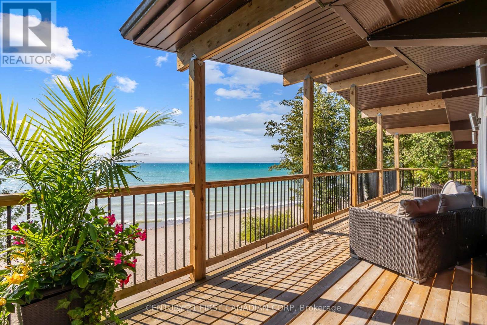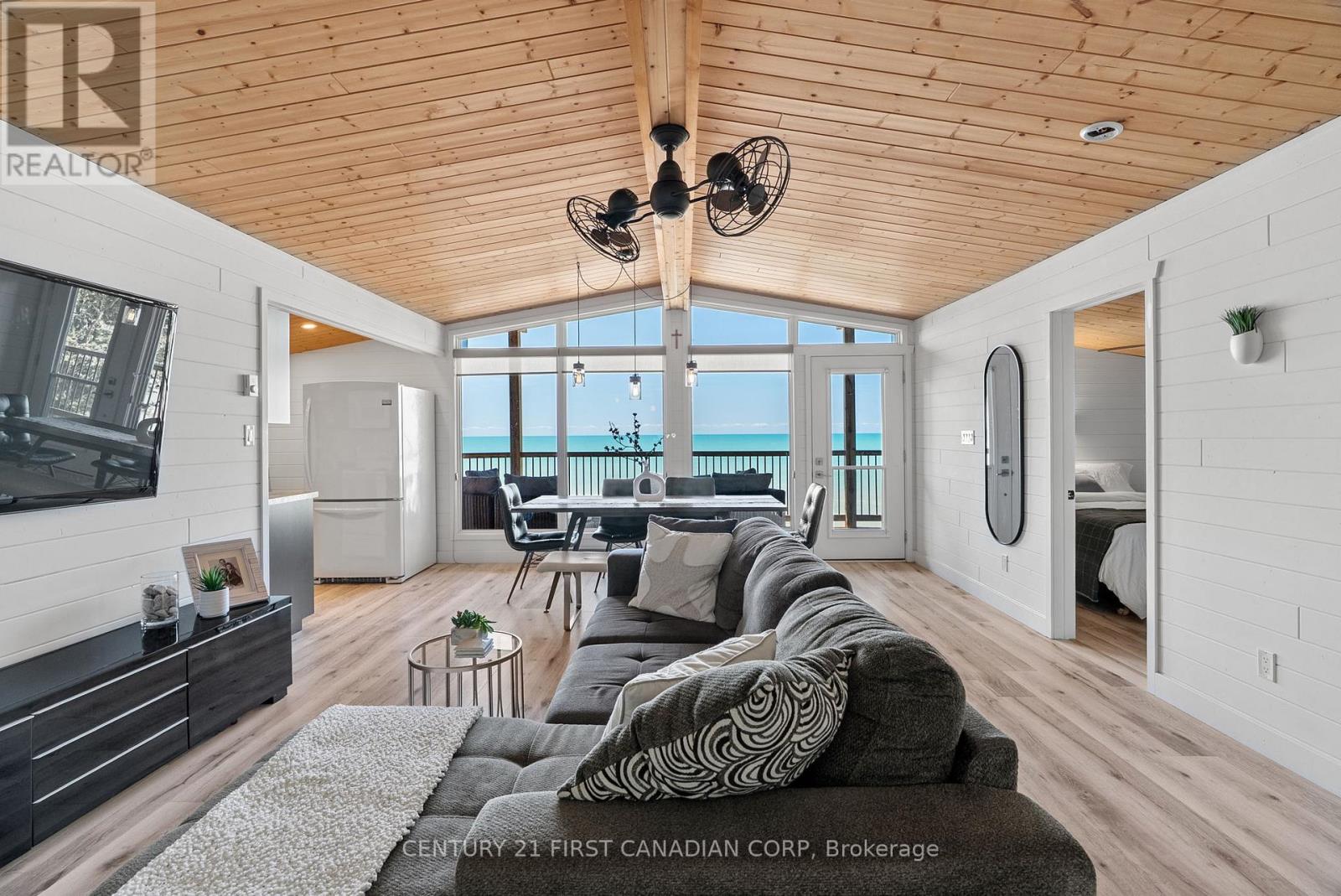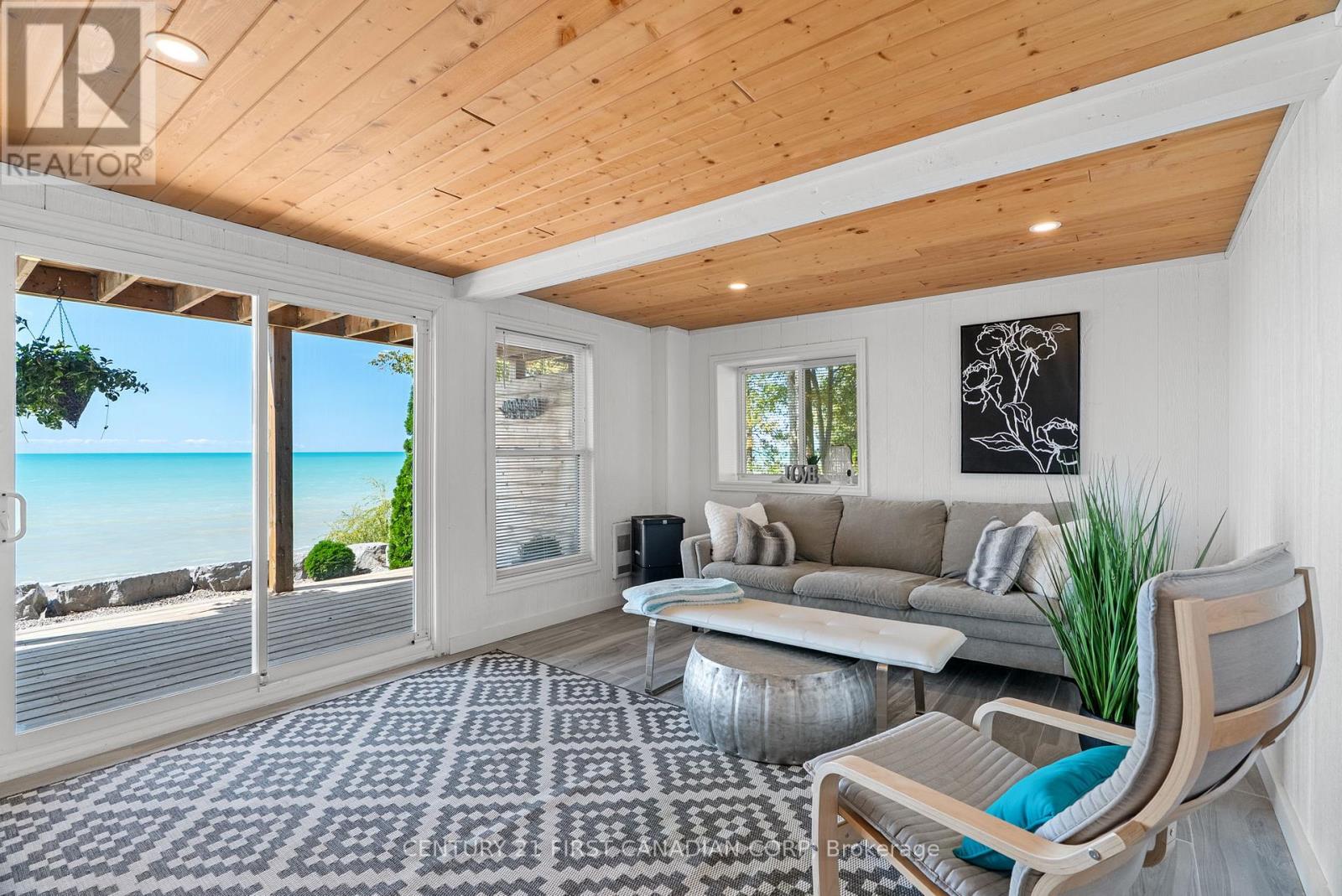 SAND, SERENITY AND SUNSETS - THIS IS LAKE LIFE AT ITS FINEST... HEAR THE WAVES! Nestled just north of Goderich in the coveted LAKELAND ESTATES, this virtually lake-level cottage with BIG 110' lake frontage offers direct access to one of the area's widest, most walkable/unimpeded sandy beaches. No stairs, no cliffs-just pure shoreline magic. Step inside this bright and beautifully updated 3+bedroom, 1.5-bath retreat and feel the charm of authentic cottage living. The open-concept kitchen and living room flow seamlessly onto a spacious lake-facing deck, while the lower level offers a second finished living area and its own panoramic deck-perfect for entertaining or unwinding with a glass of wine as the sun dips below the horizon. Features You'll Love: Two expansive decks with unobstructed lake views, Wall of windows in the main living/dining area & lower level, New studio den (2022) and new basement bedroom (2023), Wraparound decking, new staircase (2020), and armour stone landscaping, Cedar outdoor rain shower on lakefront deck... it's a beauty! Private laneway to drive boat/beach gear directly to the shore, Turnkey sale includes kayaks, life jackets, TV, beds, appliances, Weber BBQ & more, Lots of privacy with forest south and trees area on north, and very low traffic on the beach throughout all seasons, Outdoor stone fireplace on separate deck overlooking own forest and lake, a great shaded area to cool down during peak summer days, New well installed in 2025. New sewage tank fully inspected by Municipality, passed in 2025, Metal roof with many years of life, Best-in-class Lake Huron living with direct access to the water. Main renovation done in 2017 that included new decks, plumbing and electrical. Private driveway with parking for 3/4 cars. 21'x10' utility room. Low Maintenance cottage with no grass cutting, low complexity and efficient water/sewage/heating system! Unbeatable value-priced below comparable 'on bluff' resales and leading its category in the area! (id:51300)