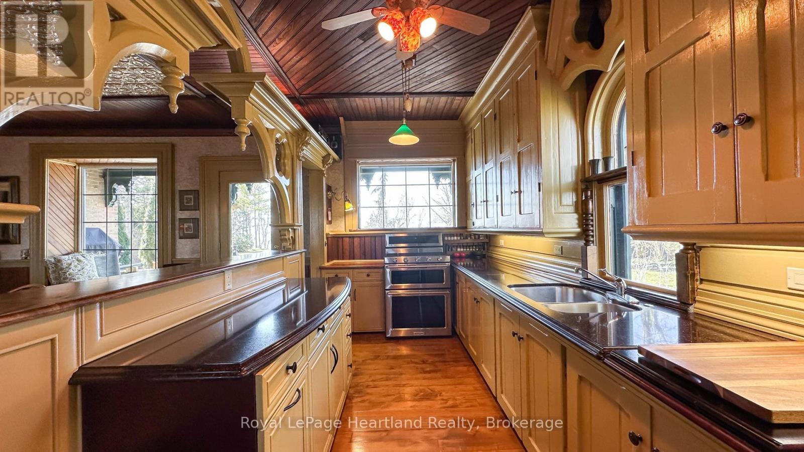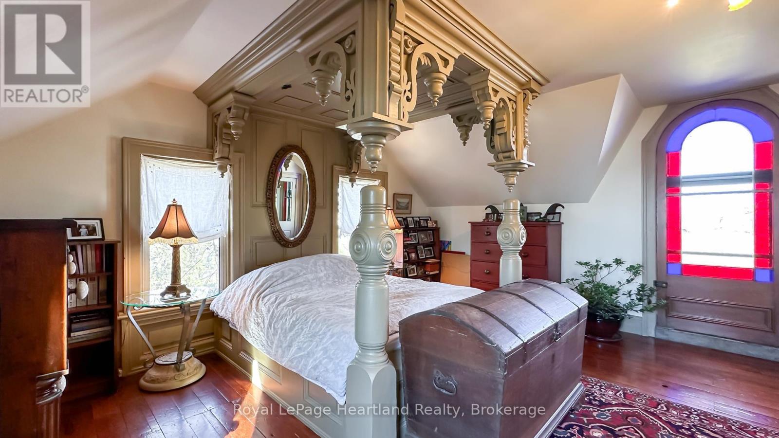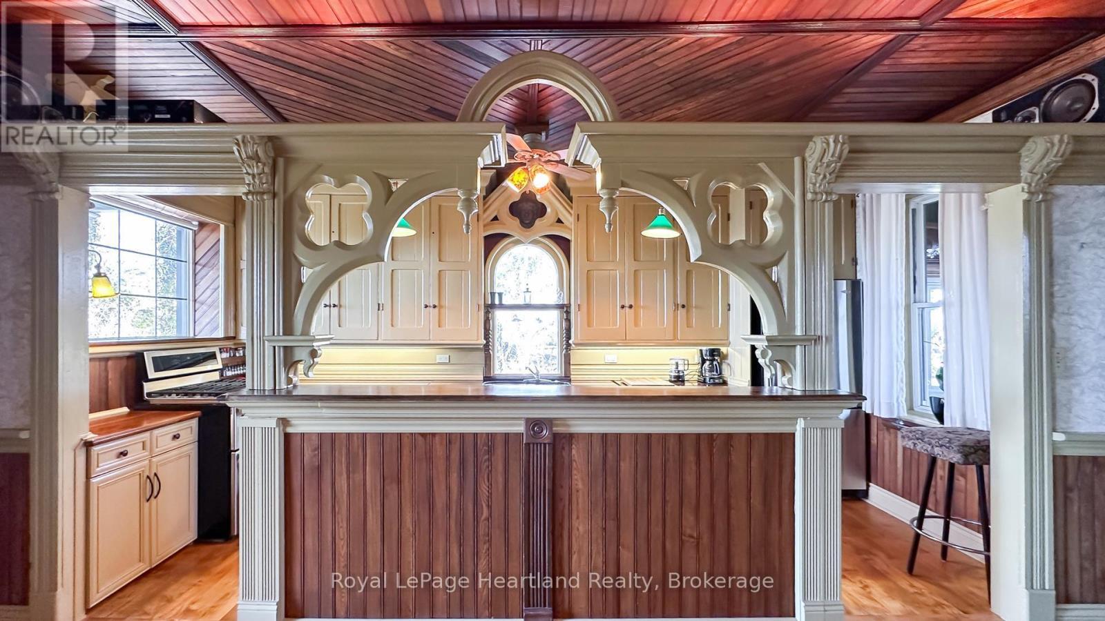 Welcome to paradise on Lake Huron! This fairytale-like property awaits its next owner and offers comfortable living in a setting unlike any other. As soon as you arrive, the inviting front porch, antique lamp post, and striking roof will capture your attention. Inside, a large eat-in kitchen is the perfect place to share family time while preparing meals and watching the lake's magical sunsets. The main floor continues to the living room and formal dining room, as well as a stained-glass reading nook. The upper level of the home features four bedrooms with built-in custom bed frames, a large four-piece bathroom with a shower and soaker tub, and laundry facilities. The primary bedroom is large and features a walk-out balcony with stunning lake views. Everywhere you turn in this home, you'll find custom craftsmanship and unique features you won't find anywhere else. The exterior boasts a large stone patio with a covered grilling area, a pond with a fountain, and mature perennial gardens. The expansive rear yard includes raised vegetable gardens, storage buildings, and a jaw-dropping accessory building that can be used for additional storage or future use as you choose. A gentle slope leads you to your own private staircase to the beachfront, where family fun and activities can continue. This is a once-in-a-lifetime opportunity to own a truly unique and original home on the beautiful coast of Lake Huron. (id:51300)