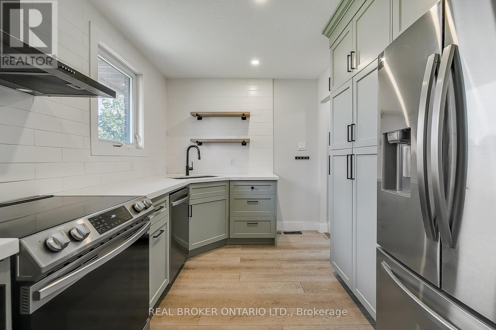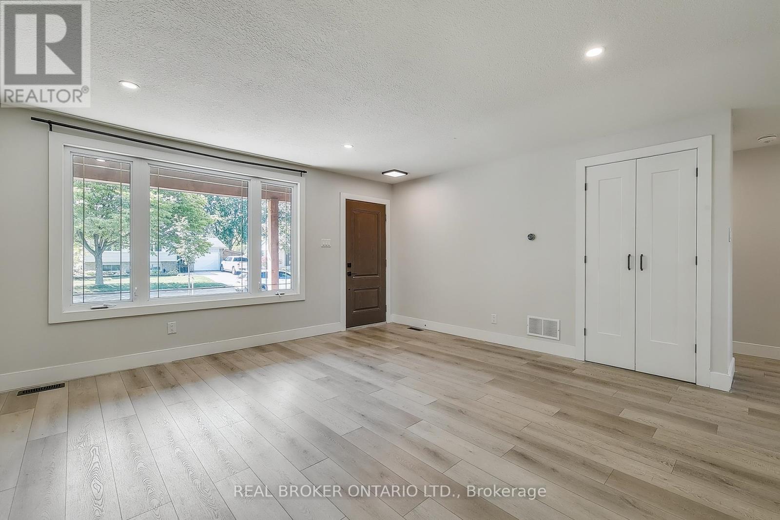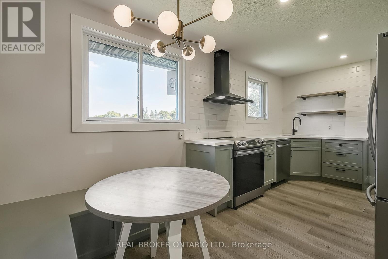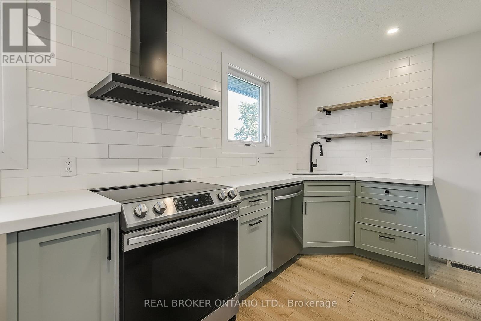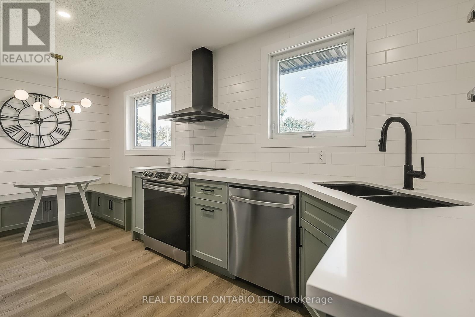Welcome to this fully renovated bungalow in Stratford, perfectly set in a family-friendly neighbourhood close to downtown. With 5 bedrooms, 2 bathrooms, a bright open living space, and a custom kitchen with quartz counters and built-in seating, this home blends style and function. Major updates include a new metal roof (2018) and extensive 2021 renovations: exterior landscaping with a new porch, walkway, and carport; complete electrical, plumbing, and HVAC upgrades; a brand-new kitchen with custom cabinetry and appliances; new insulation, millwork, flooring, bathrooms, basement windows, and fresh finishes throughout. The finished basement offers a spacious laundry room, oversized storage, and an additional bedroom added in 2025. Outside, enjoy the extended porch and large backyard with plenty of potential. Every detail has been thoughtfully designed, making this a home you'll be proud to call your own. (id:51300)