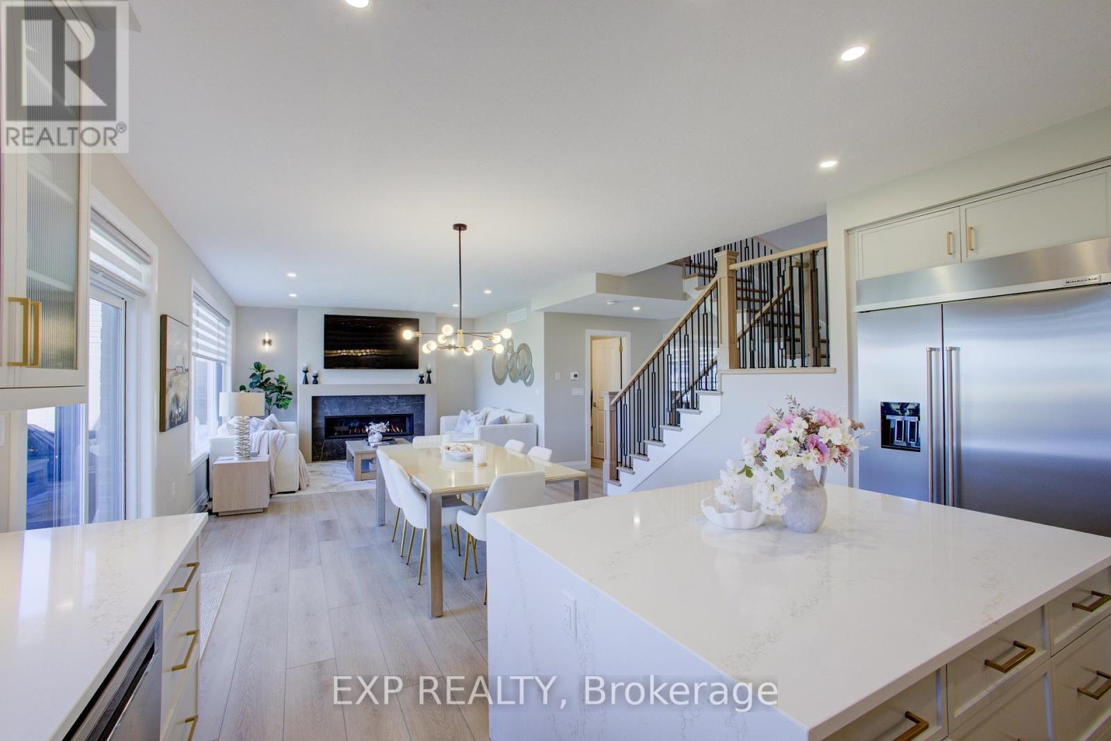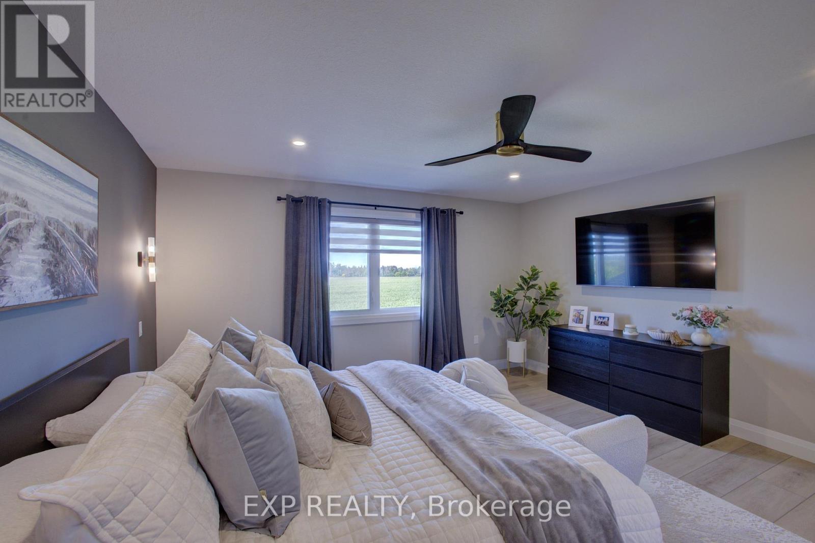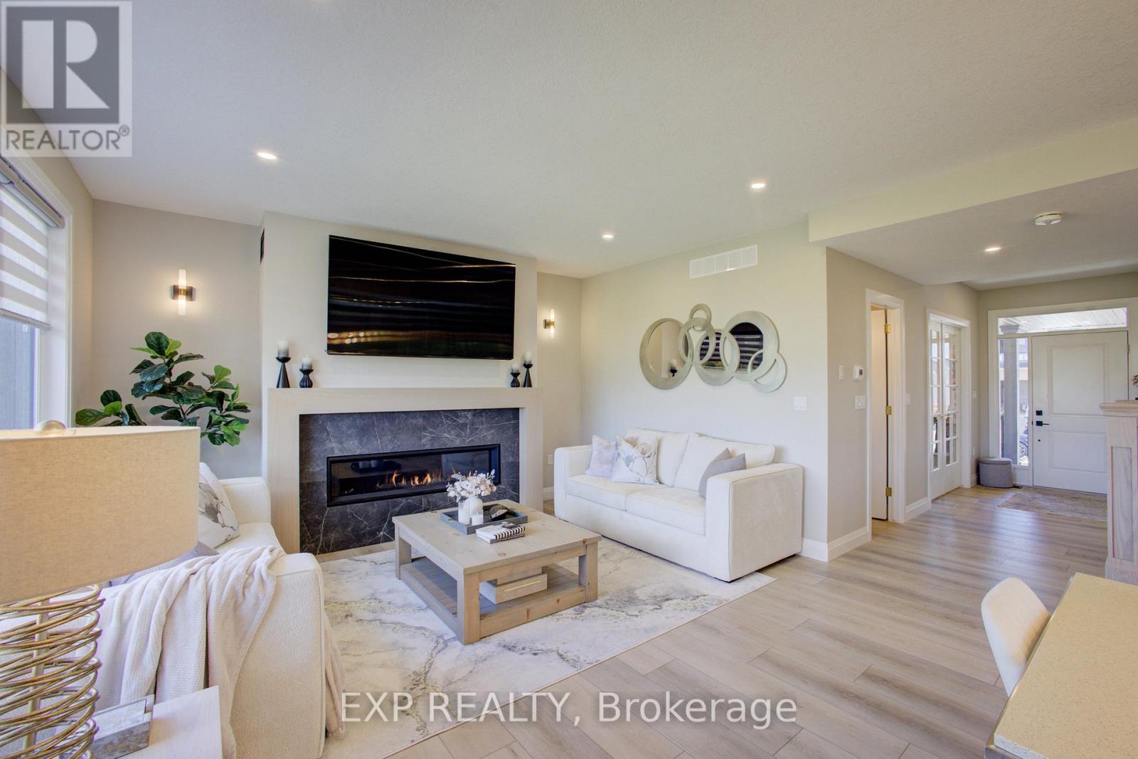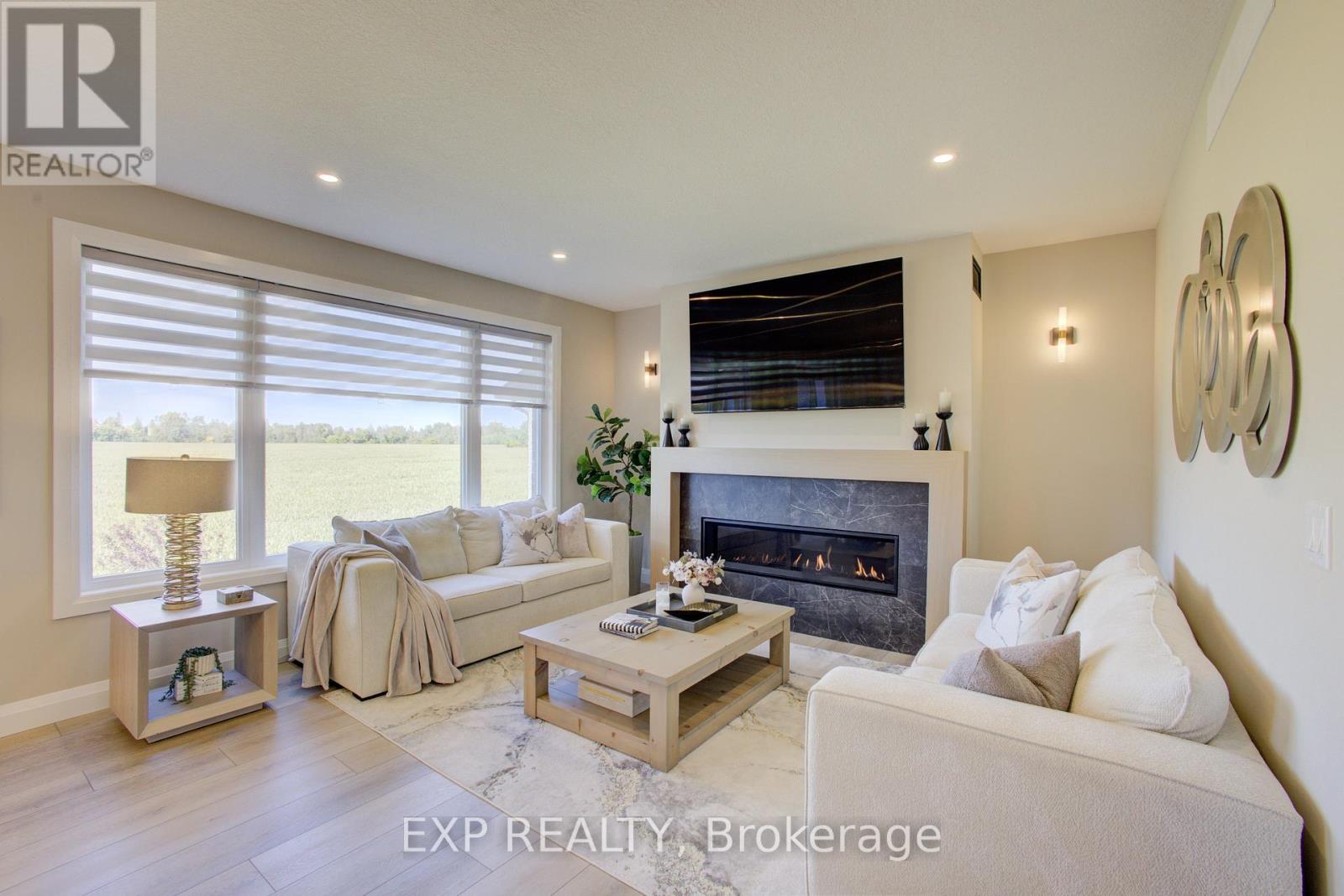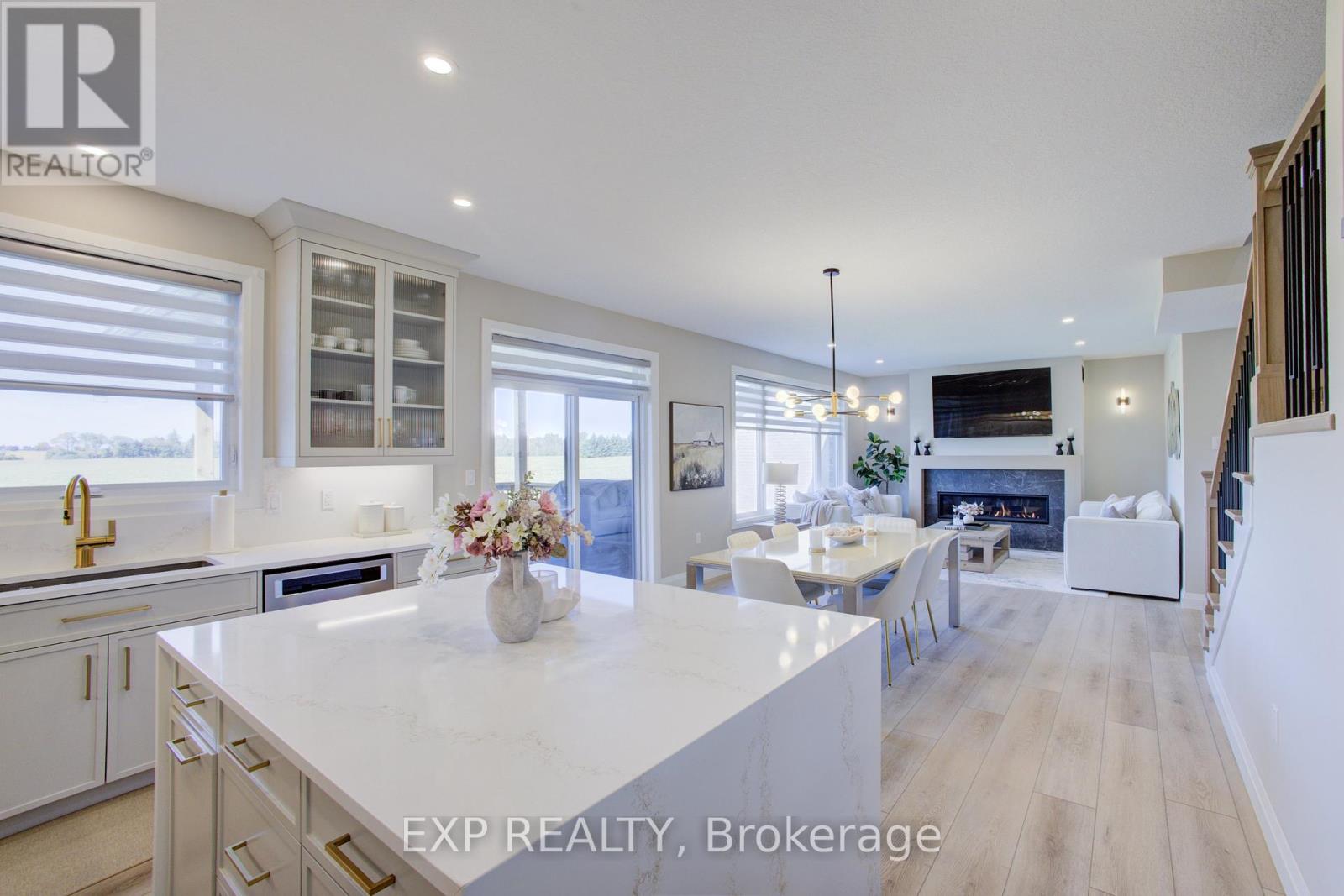 Welcome to 90 Rea Drive, a show stopping residence by Keating Construction that truly raises the bar. This 4 bedroom, 4 bathroom two storey home delivers over 2,800 sq. ft. of exquisitely finished living space designed for comfort, connection, and style.The heart of the home is a luxury inspired kitchen featuring quartz countertops, a generous island, custom cabinetry, and premium stainless steel appliances . Perfectly positioned for both everyday living and effortless entertaining. The bright, open layout flows into expansive living and dining areas where oversized windows frame sweeping views of the farmland beyond. A stunning gas fireplace is the focal point for family gatherings. Enjoy the covered raised deck overlooking the farm field below for tranquil morning coffee or an evening glass of wine, no matter the weather. A thoughtfully designed mudroom with built-in storage, pantry space, and direct access to the double garage adds a layer of practical luxury, while a bonus main floor office/bedroom offers flexible space tucked away from the main living areas. Upstairs the custom layout is made for family living with no wasted space. The serene primary suite offers a walk in closet and a spa style ensuite with a double vanity and an oversized walk in shower. Two additional bedrooms, a full bath, and a convenient laundry room complete this functional and well planned level. The finished walkout basement extends the living space with a large rec room, featuring 9; ceilings, a fourth bedroom/flex space, another full bath, and direct access to the backyards peaceful countryside setting. With its refined finishes, thoughtful design, and exceptional build quality, 90 Rea Drive is more than just a home - its where style meets substance. (id:51300)