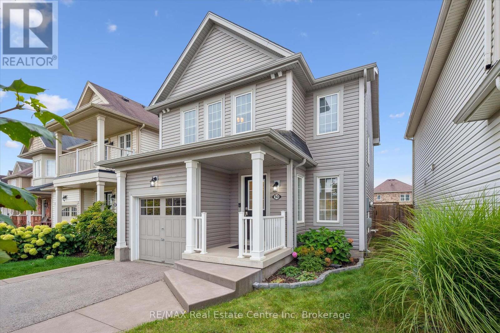 Welcome to 90 Starlight Ave, a beautiful 3-bdrm home W/finished bsmt & lovely backyard nestled in quiet family-friendly neighbourhood! This home combines comfort, fresh design & superb location-perfect for growing families or those seeking peaceful living W/easy access to nearby cities. As you pull up you'll notice attached 1-car garage & charming front porch that invites you to sit back & unwind. Step inside & discover eat-in kitchen W/crisp white cabinetry, S/S appliances, granite counters & sliding glass door that opens onto the backyard. Enjoy seamless indoor-outdoor living from your morning coffee by the patio to outdoor BBQs with friends. Adjacent living room is sun-drenched with large picture window & rich hardwood floors, ideal for relaxing or entertaining. Main level is completed by stylish 2pc bath W/quartz counters. Upstairs, the primary suite is a true retreat! Multiple windows flood it W/light & there's a W/I closet plus a luxurious cheater ensuite featuring oversized vanity W/granite counters & shower/tub. 2 add'l bdrms provide lots of space & light, each W/dbl closets & large windows. 2nd floor laundry makes daily duties a breeze! Finished bsmt adds excellent bonus space: bright & open thanks to large window & pot-lighting, offering versatility whether you want a rec room, gym, office or play space. Outside the large fenced backyard boasts huge stone patio-perfect for entertaining & relaxing. There's a shed for storage & ample yard space for kids & pets to play. Location is a highlight: just around the corner from Breslau Community Centre, Breslau Grand Splash & Breslau Memorial Park, making outdoor fun & family activities convenient. Families will love the proximity to St. Boniface Catholic Elementary School & Breslau PS both within walking distance. Breslau offers small-town charm W/rural peace but you aren't far from big-city conveniences-under 15-min to Waterloo & Kitchener, less than 20-min to Guelph & mins from Waterloo International Airport! (id:51300)
