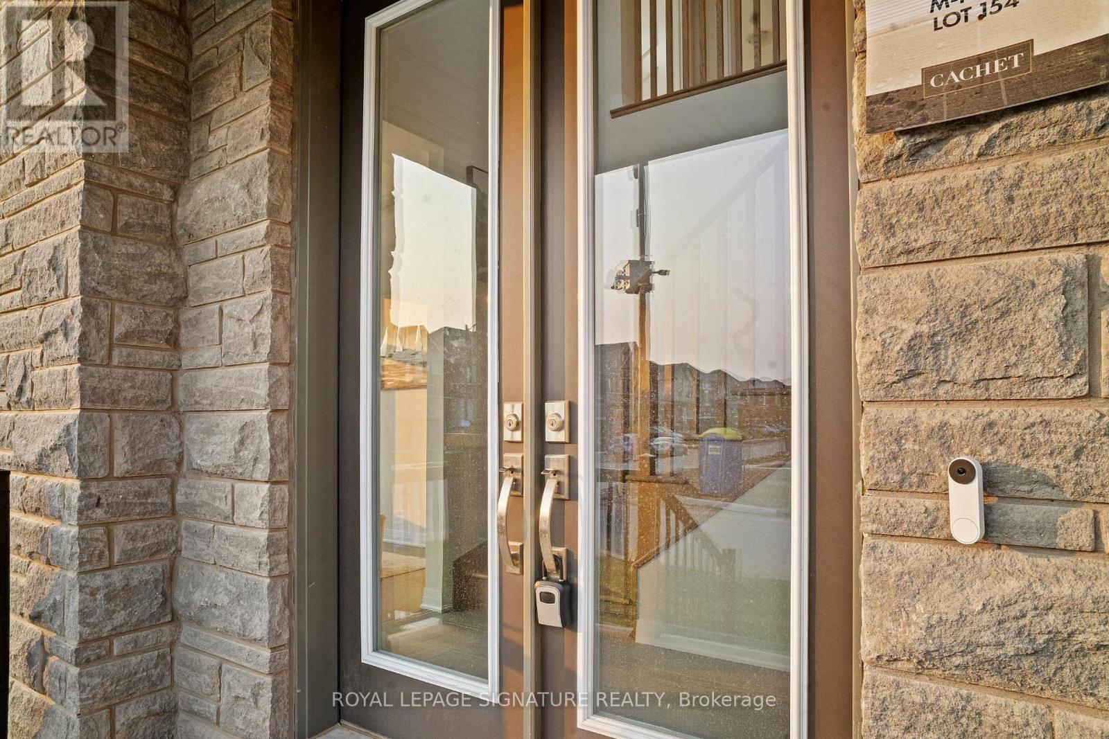 Welcome to this exceptional newly built home by Cachet Homes, ideally situated on a premium corner lot in the picturesque town of Erin. Offering 4 spacious bedrooms, 3 bathrooms, and parking for up to 6 vehicles (including a double-car garage and extended driveway), this home is the perfect blend of luxury, comfort, and function. As you step through the elegant double-door entry, you're welcomed by a grand open-concept foyer filled with natural light. The main floor features 9-foot smooth ceilings and stylish 8-foot interior doors, creating a sense of openness and sophistication. Rich hardwood flooring flows throughout the main level and upper hallway, complemented by solid oak stairs with matching oak railings. The great room and den showcase custom waffle ceilings and a cozy gas fireplace, offering both charm and warmth. The upgraded kitchen is a chef's dream, complete with premium cabinetry, granite counter tops, and a large center island which is perfect for entertaining. A convenient mudroom with garage access enhances everyday functionality. Upstairs, the spacious primary suite features a large walk-in closet and a spa-like 5-pieceensuite with elegant finishes. The second floor also includes a full laundry room, adding convenience to daily living. Located in a highly desirable, family-friendly neighborhood, this home is just minutes from top-rated schools, scenic parks, trails and essential amenities. With exceptional curb appeal, high-end finishes, and a thoughtful layout, this is a rare opportunity to own a luxury home in one of Erin's most sought-after communities. (id:51300)