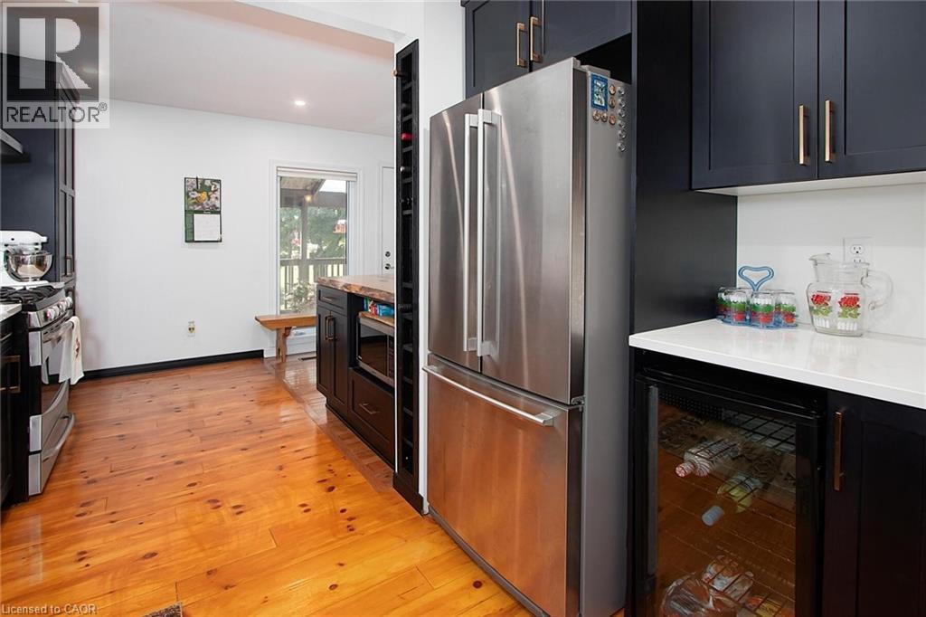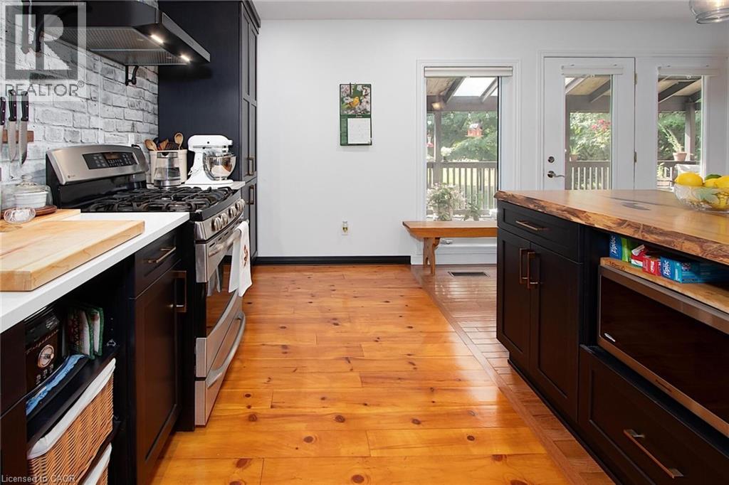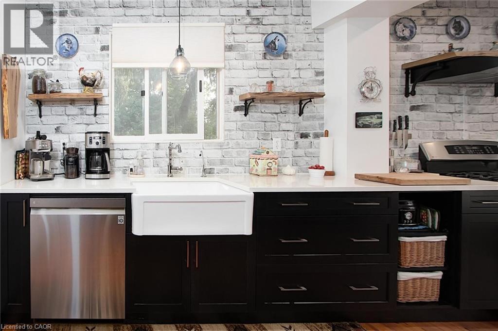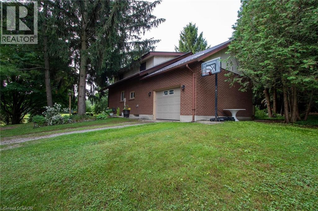 Country charm living with modern comfort! Picturesque property is located just minutes from St.Marys. This well maintained home nestled amongst mature trees offers features for anyone who loves the tranquility of rural living. You'll appreciate the mature landscaping and wonderful treed view from this lovely 3 bedroom, 2 bath home with attached garage. Inside, the kitchen has been updated with a pantry, custom built wine rack, beverage fridge, a farmers sink and country touches such as pine flooring and live edge wood accents. The spacious living room features oak flooring and a field stone woodburning fireplace and is open to the kitchen and an expansive cover porch overlooking the countryside. There is a separate dining room which leads to a privarte garden area with a hot tub. The main floor laundry room is conveniently located next to the garage interior entrance. Downstairs there is a finished rec room, and a workshop area which features a walk out entrance to the back yard. All new windows have been installed upstairs (with newer kitchen window and exterior basement walk out door) and there is a forced air natural gas heating system. The steel roof and soffits are approximately 13 years old. Centrally located close to Stratford, St. Mary's, London and Woodstock. Close to Sunova Beach, Happy Hills campground, Wildwood and the Berry farm. (id:51300)