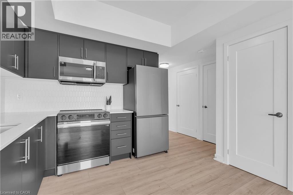 AVAILABLE NOW! Enjoy the convenience of main-floor living in this brand-new 2-bedroom, 2 full-bath stacked townhome located in Fergus’s sought-after Sunrise Grove community. With no stairs, this accessible layout is ideal for comfortable, everyday living. The bright, open-concept design features durable flooring, a modern kitchen with stainless steel appliances and quartz countertops, and a spacious living/dining area perfect for relaxing or entertaining. Large windows bring in plenty of natural light, creating a warm and welcoming atmosphere. The home offers two generously sized bedrooms, including a primary suite with excellent closet space. Two full bathrooms—one with a tub and the other with a walk-in shower—add flexibility and convenience. Additional features include in-suite laundry, one designated parking spot, and professional property management. Surrounded by peaceful green space and just minutes from downtown Fergus, Elora Gorge, parks, and everyday amenities, this main-floor unit offers the perfect blend of accessibility, style, and location. Immediate occupancy available. (id:51300)