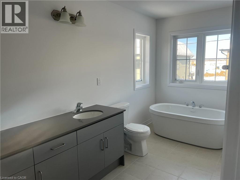 BRAND-NEW END-UNIT TOWNHOME FOR LEASE IN STRATFORD. Welcome to effortless modern living in this never-lived-in, 2-storey end-unit townhome, ideally located just behind the mall in Stratford. Offering extra windows, added privacy, and a bright, airy feel throughout. The open-concept main floor features 9-foot ceilings, upgraded flooring, and a sleek kitchen finished with quartz countertops, a breakfast bar, and a walkout – creating a beautiful space for both everyday living and entertaining. Upstairs, enjoy 8-foot ceilings, a thoughtfully designed layout, and the convenience of upper-level laundry. The oversized primary bedroom is a true retreat, complete with a walk-in closet and a stunning ensuite featuring a soaker tub—your own private escape at the end of the day. As an end unit, this home benefits from additional natural light and a more spacious feel throughout. Heat/gas, hydro, water, and hot water heater are to be paid by the tenant(s). Good credit is required, and a full application must be submitted. Perfectly situated close to shopping, parks, schools, restaurants, and everyday amenities, this home offers a lifestyle of ease in a growing Stratford community. Available immediately! Photos are virtually staged* (id:51300)