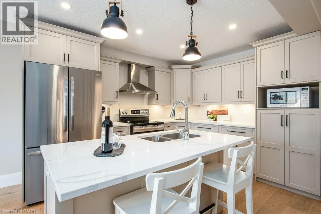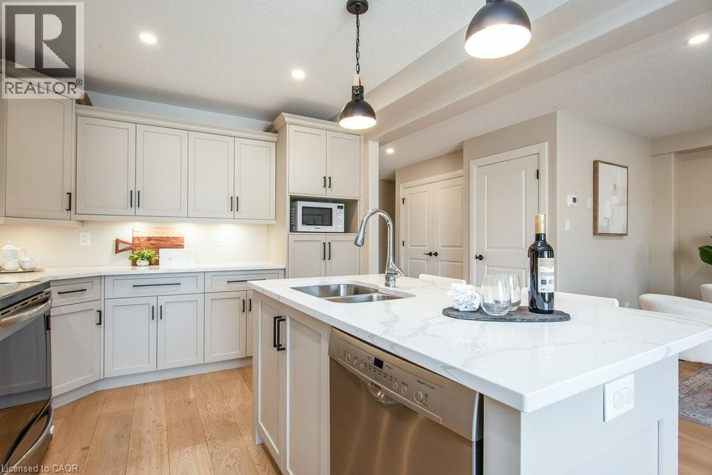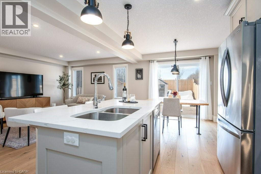 Crafted by the respected family owned builder Stroh Homes, this beautifully designed two storey semi detached residence blends quality craftsmanship with thoughtful, modern living. Inside, you will find premium finishes throughout, including wide plank engineered hardwood flooring and energy efficient LED pot lights that create a warm, contemporary ambiance. The bright, open concept kitchen is as functional as it is stylish, featuring sleek granite countertops and a spacious centre island, perfect for meal prep, casual dining, or gathering with family and friends. Upstairs, the generous primary suite offers a private retreat, complete with a beautifully appointed ensuite and a large walk in closet. Two additional well sized bedrooms and a full four piece bathroom provide plenty of space for family or guests. The unfinished basement presents an excellent opportunity to customize and expand your living space. With large windows allowing for natural light, the potential for a future bedroom or inviting recreation area is already in place. A rough in for an additional bathroom and designated laundry space add even more flexibility. Built with care, quality materials, and attention to detail, this home delivers comfort, style, and room to grow, perfectly suited to your evolving lifestyle. (id:51300)