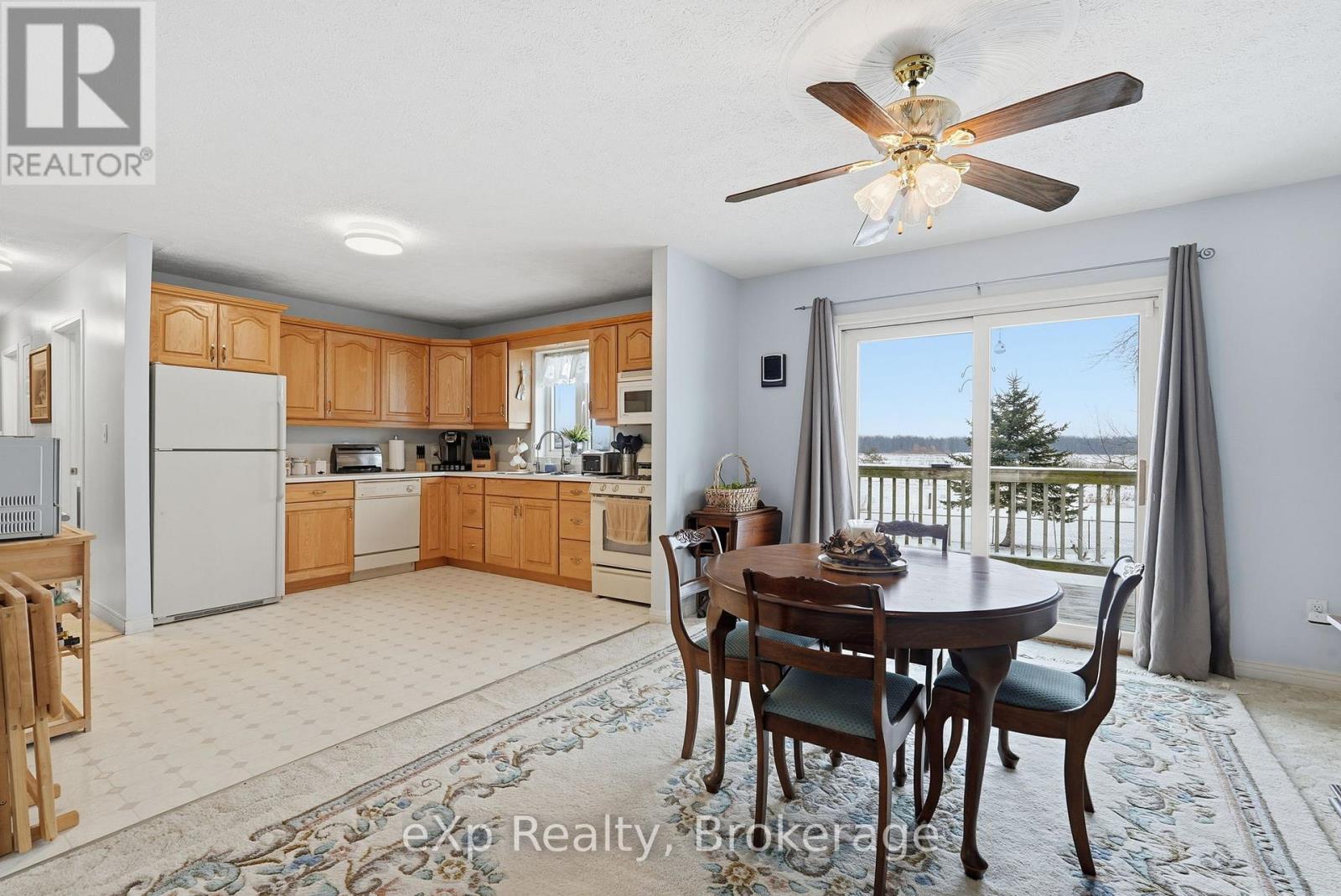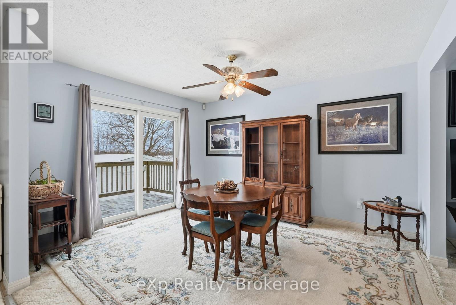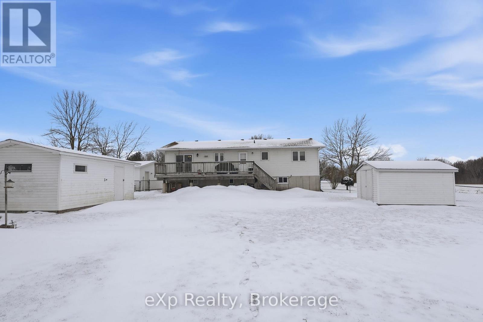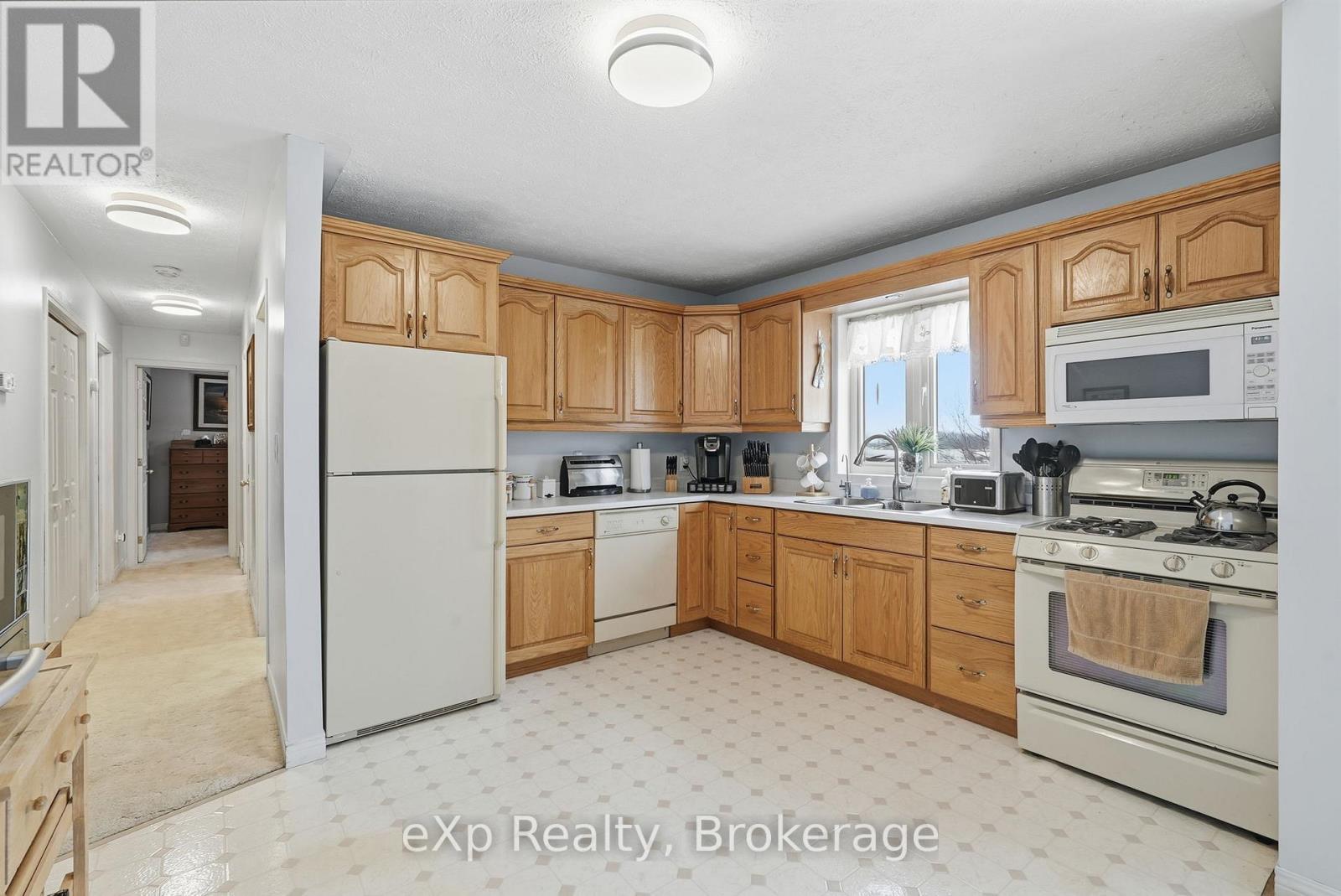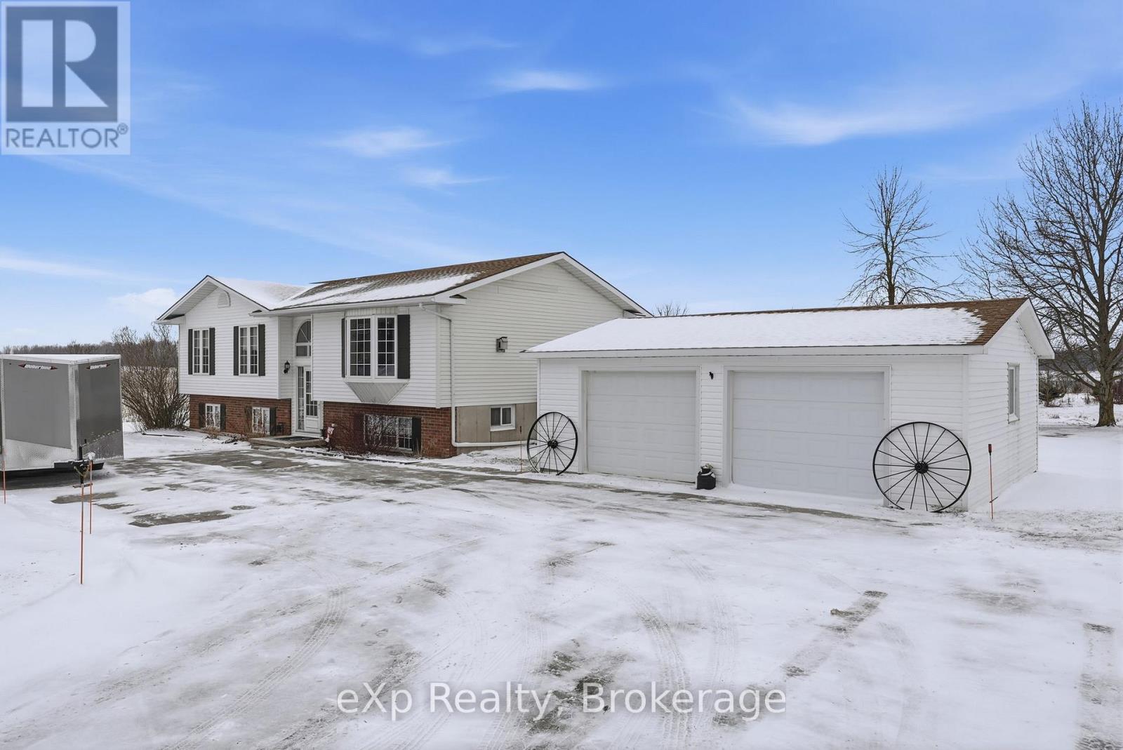 Set on just under an acre, this bright and spacious 1998 Viceroy raised bungalow offers the perfect blend of country living and everyday comfort. With only one neighbour across the road, this property is ideal for those craving space, quiet, and room to breathe.The split-entry design welcomes you into a light-filled main floor featuring an open-concept kitchen, living, and dining area, perfect for both daily living and entertaining. A large bay window fills the living room with natural light, while patio doors off the dining area lead to the back deck. The main floor includes two bedrooms, a full four-piece bath, a generous primary suite with a large walk-in closet. A convenient laundry room on this level provides direct access to the back deck-ideal for busy households or country living. Fresh paint and professionally cleaned carpets add to the move-in-ready appeal.The lower level offers incredible development potential with a spacious open layout and drywall already in place. A third bedroom, three-piece bath, large utility room, and ample storage make this level highly functional, with only flooring needed to complete the space to your vision.Recent updates between 2019 and 2025 include siding and shingles, a Generac generator, new sump pump, Culligan water purification system, and main floor cosmetic updates. The septic system was last pumped in October 2023. The home is serviced by a forced-air propane furnace, central air conditioning, and propane hot water heater.Outside, the property continues to impress with a detached 26.5' x 20' double car garage featuring its own electrical panel, two additional storage sheds, and a chain-link fenced area-perfect for keeping pets safe. Mature surroundings and open space create a peaceful rural setting with endless possibilities.This is a wonderful opportunity for buyers seeking the privacy and freedom of a country property, while still enjoying a solid home with room to grow. (id:51300)