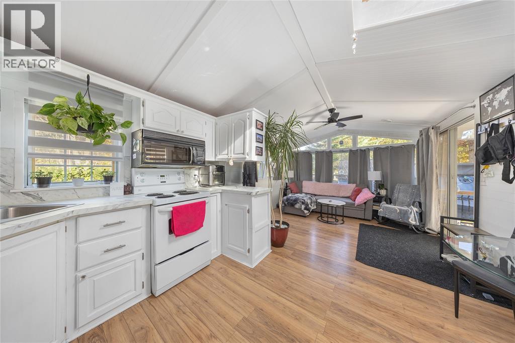 Enjoy quiet, affordable living in this beautifully updated all-season, two-bedroom home in Oak Grove Park’s adult lifestyle community. Spend time in the outdoors while being just 4k from the lake through the Ausable cut, just minutes from Pinery Provincial Park & the local favourite restaurant, Grog's. You can also just enjoy easy access to the pool. You won't forego privacy, in this quiet park with a separate, private driveway. This home features vaulted ceilings, an open-concept layout, and updated laminate flooring. The kitchen offers oak cabinets, laminate counters, skylight, and appliances included. Lose track of time in your private oasis with your covered front porch or hot tub in the sound of nature. Other recent updates include a new furnace ('24), steel roof ('24), and new carport. A life of peace and quiet is here! Land lease fee: $350/month. (id:51300)