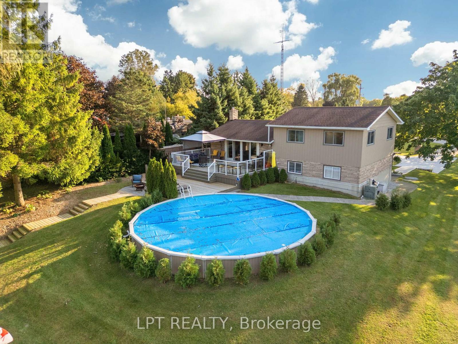 A RARE RIVERSIDE RETREAT WHERE DREAMS COME TRUE. Nestled along the serene banks of the Ausable River, this exquisite three-bedroom, two-bathroom home is a rare gem that offers both comfort and adventure. With breathtaking river views from nearly every room, this home is a perfect retreat for those who cherish nature's beauty and the pleasures of waterfront living. Step inside to find an inviting open-concept kitchen and living area with natural light from large windows that showcase the picturesque scenery. A patio door leads to a two-tier deck overlooking a stunning 30-foot round heated pool, where you can relax and watch the boats go by. The master suite features a luxurious remodeled ensuite with a tiled shower and double sinks, along with a private walkout to a covered front porch, the perfect spot for morning coffee or quiet evenings. Downstairs a spacious Rec room with a cozy wood-burning fireplace creates a warm and inviting atmosphere, ideal for family gatherings or quiet nights. The home is equipped with a Generac generator, an essential feature for those who work from home. The exterior of the home is just as impressive, with professionally designed stone landscaping enhancing the beauty of the front yard. A large heated 32x23 shop provides ample space for hobbies or storage, while an additional 12x18 garage offers even more room for your needs. For those who love the water, the 75-foot sea wall allows you to launch and dock your boat with ease, while the spacious backyard provides a perfect setting for entertaining. Spend your afternoons lounging by the pool, your evenings enjoying a sunset boat ride to Port Franks Beach, and your weekends hosting unforgettable gatherings. This property is more than just a home it is a lifestyle of relaxation, recreation, and natural beauty. If you are seeking a place where memories are made and dreams come to life, look no further. Schedule a viewing and experience this riverside retreat for yourself! (id:51300)