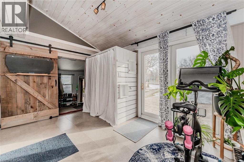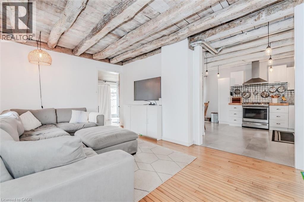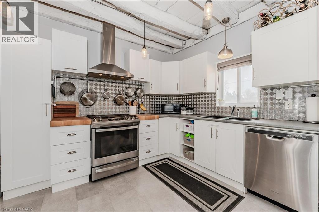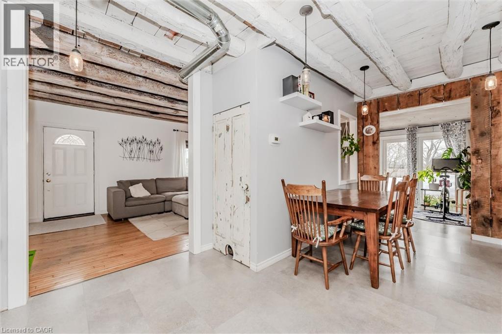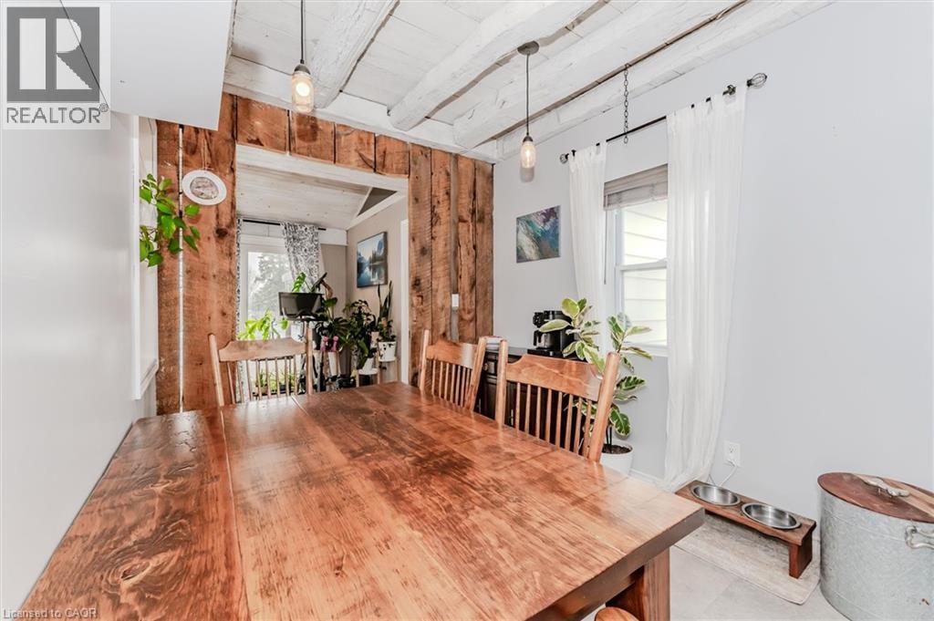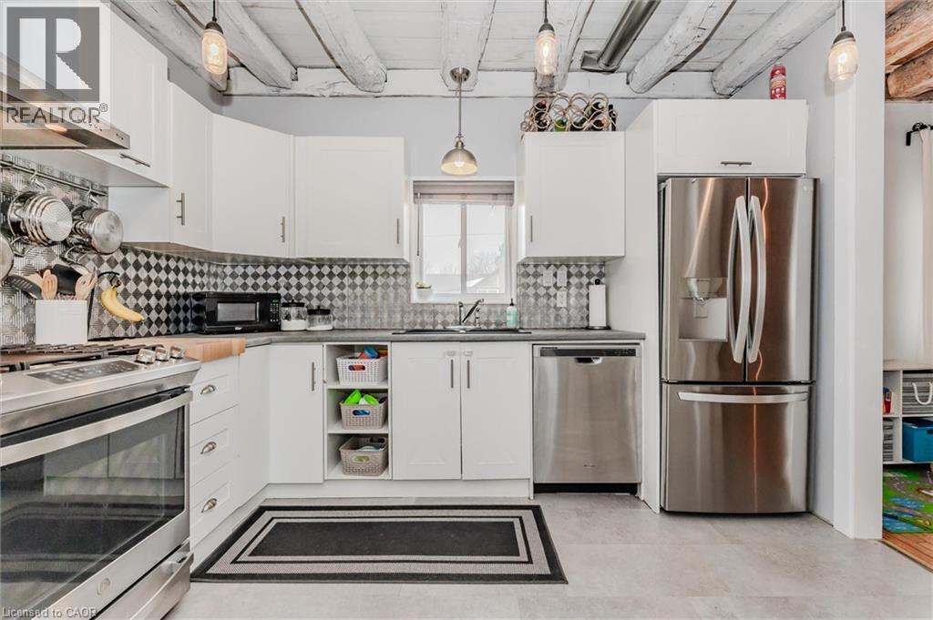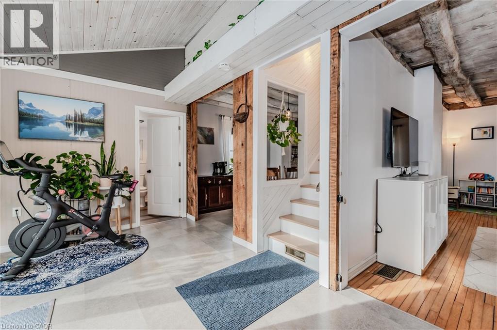 Charming family home in the heart of Conestogo. Enjoy small-town living just 5 minutes from top city amenities. This updated character home features exposed beams on the main floor, a renovated bathroom, freshly painted main floor and an updated spacious kitchen with gas-stove and stainless steel appliances. The second floor offers two large bedrooms with ample natural light and room for the whole family. Situated on a spacious 86 x 200ft irregular lot, the property backs onto a community centre with tennis courts, ball diamond, playground and a ball hockey rink. The property offers ample parking, including a double driveway for 6+ cars and a detached workshop/garage with a drive-through door. An additional single driveway accommodates 2 more vehicles or allows for parking an RV/other machinery. Recent updates include a newer furnace and A/C (2018), an owned water softener (2019), gas line for a BBQ, gas stove (2022), fridge (2023), washer & dryer (2021). The fully fenced yard boasts a large deck with a gazebo, a large fire pit, 4 lilac trees, 2 cherry trees and a well established grape vine as well as beautifully landscaped gardens with plenty of room for a vegetable garden. Don’t miss out on this impressive home! (id:51300)