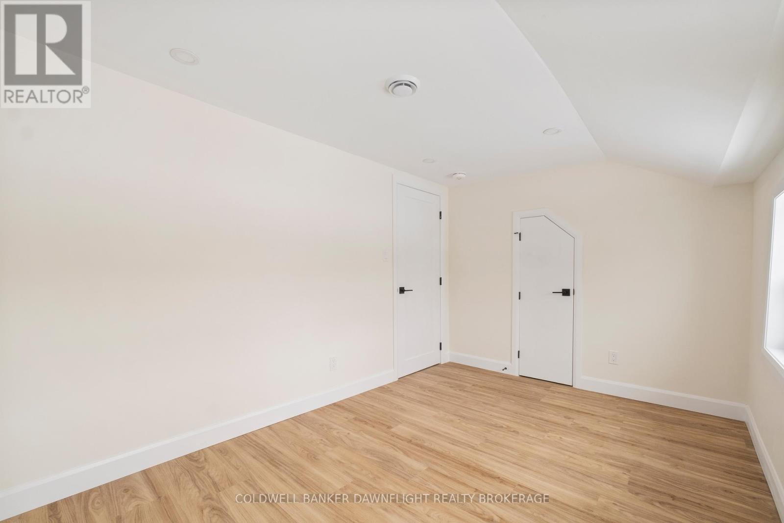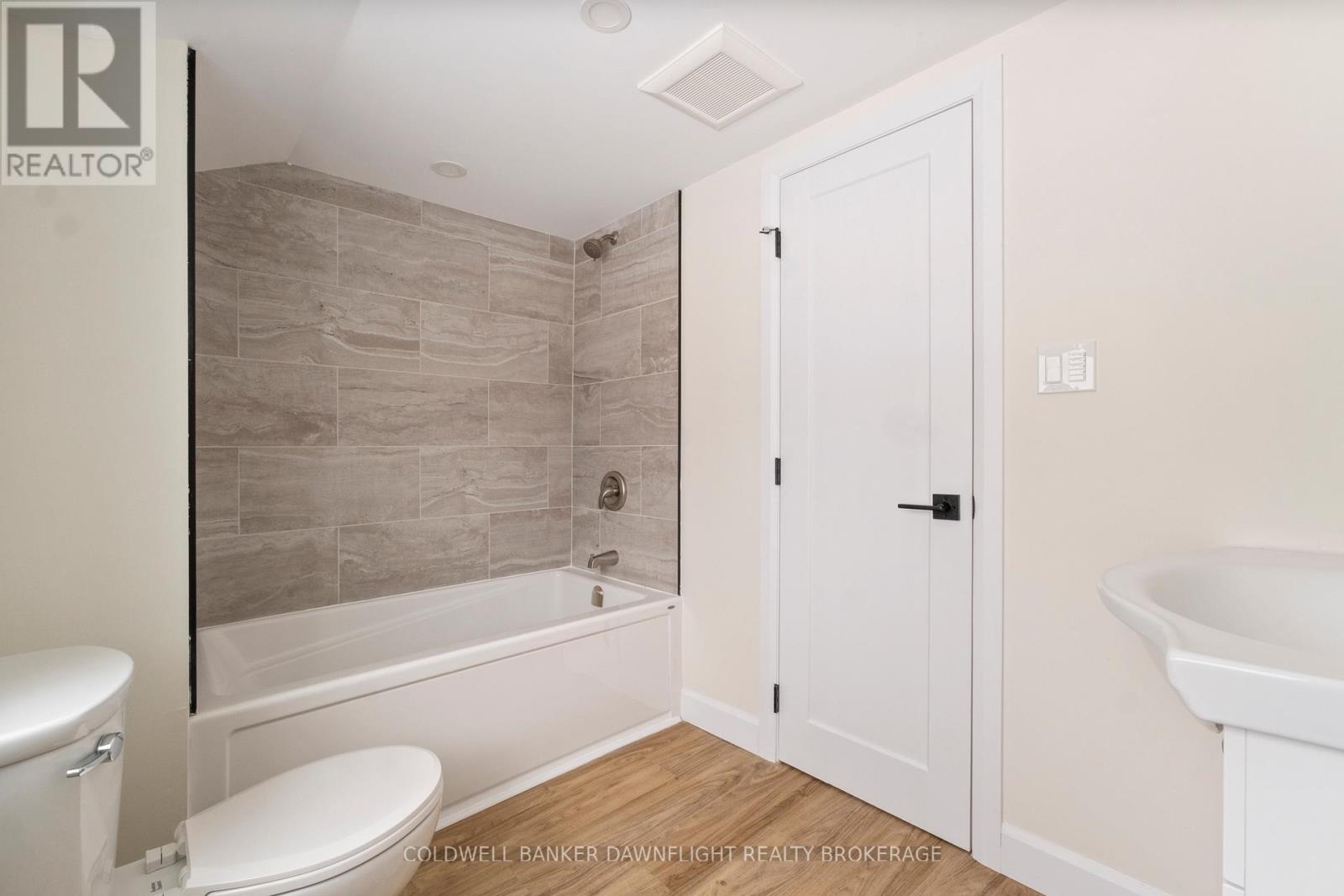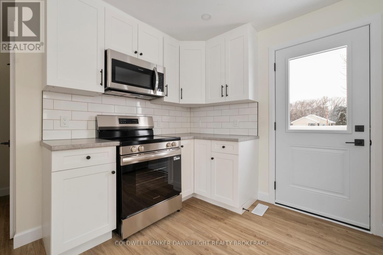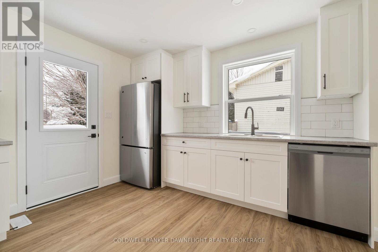 Recently renovated from the studs, this move in ready three bedroom, one bathroom unit offers modern comfort and thoughtful design. The main floor features an open concept layout with clear sightlines between the spacious kitchen and bright living area, highlighted by a large front window that fills the space with natural light. The kitchen is equipped with stainless steel appliances, soft close drawers, and a convenient pantry, with access to a small deck and backyard through the rear entrance. Upstairs, you'll find three well proportioned bedrooms, a stylish four piece bathroom, and the convenience of in-suite laundry. Additional storage space is available in the accessible basement. This unit also includes parking for two to three vehicles, providing practical benefits to complement its fresh interior. Ready for immediate possession. (id:51300)