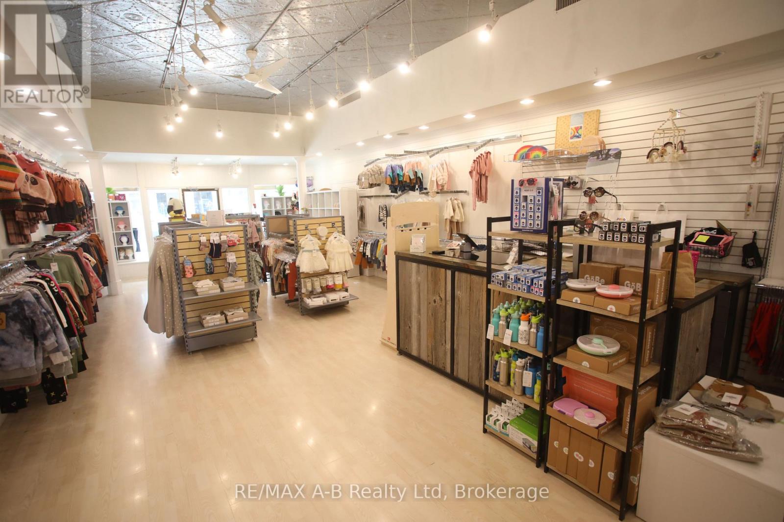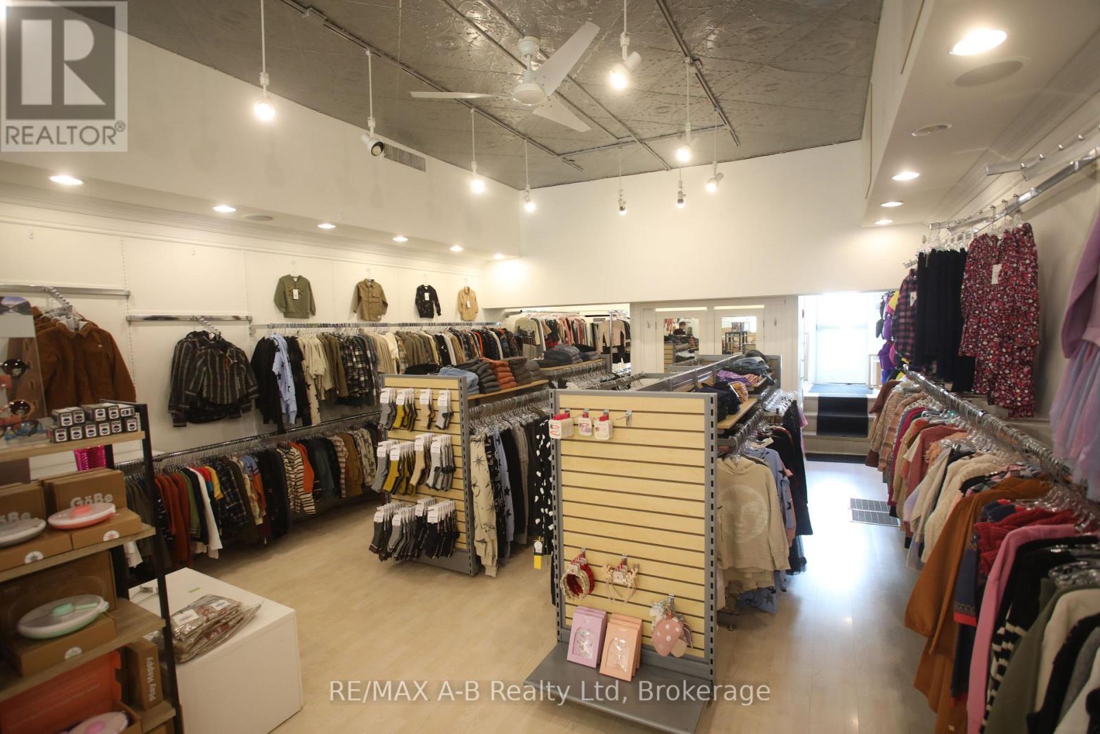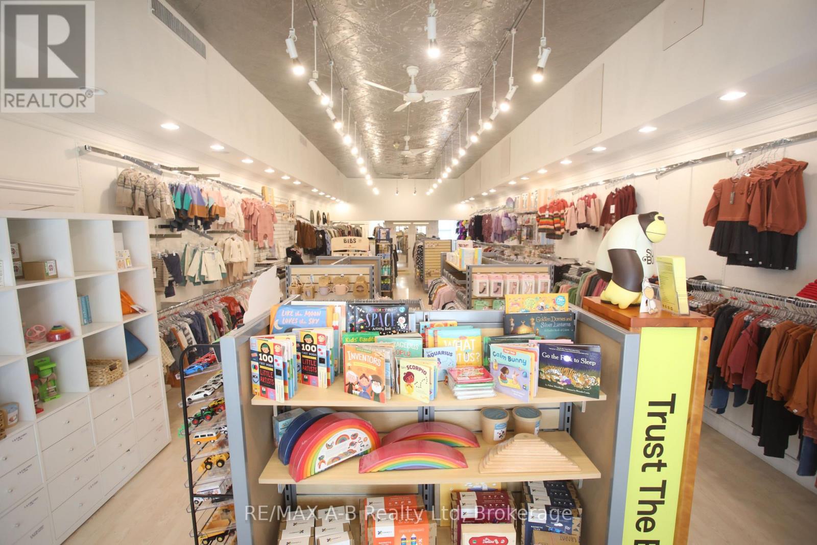 Exceptional downtown retail location for lease. Featuring great exposure and main entrance on Downie St, and a rear entrance off the Albert St parking lot. Right beside an alleyway. Includes additional storage in basement. Appx 1,200 sq feet in the main level for a store front. Currently used as a Children's Clothing store, can be made into an array of retail or office uses. Or consider buying the existing business and continue running it (See MLS#X12629462). Unit is just steps away from City hall and has a steady stream of foot traffic always walking by. (id:51300)