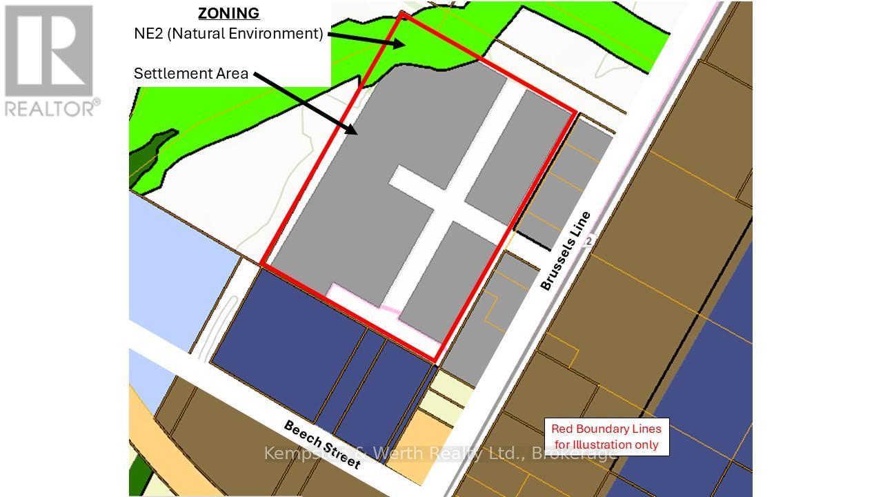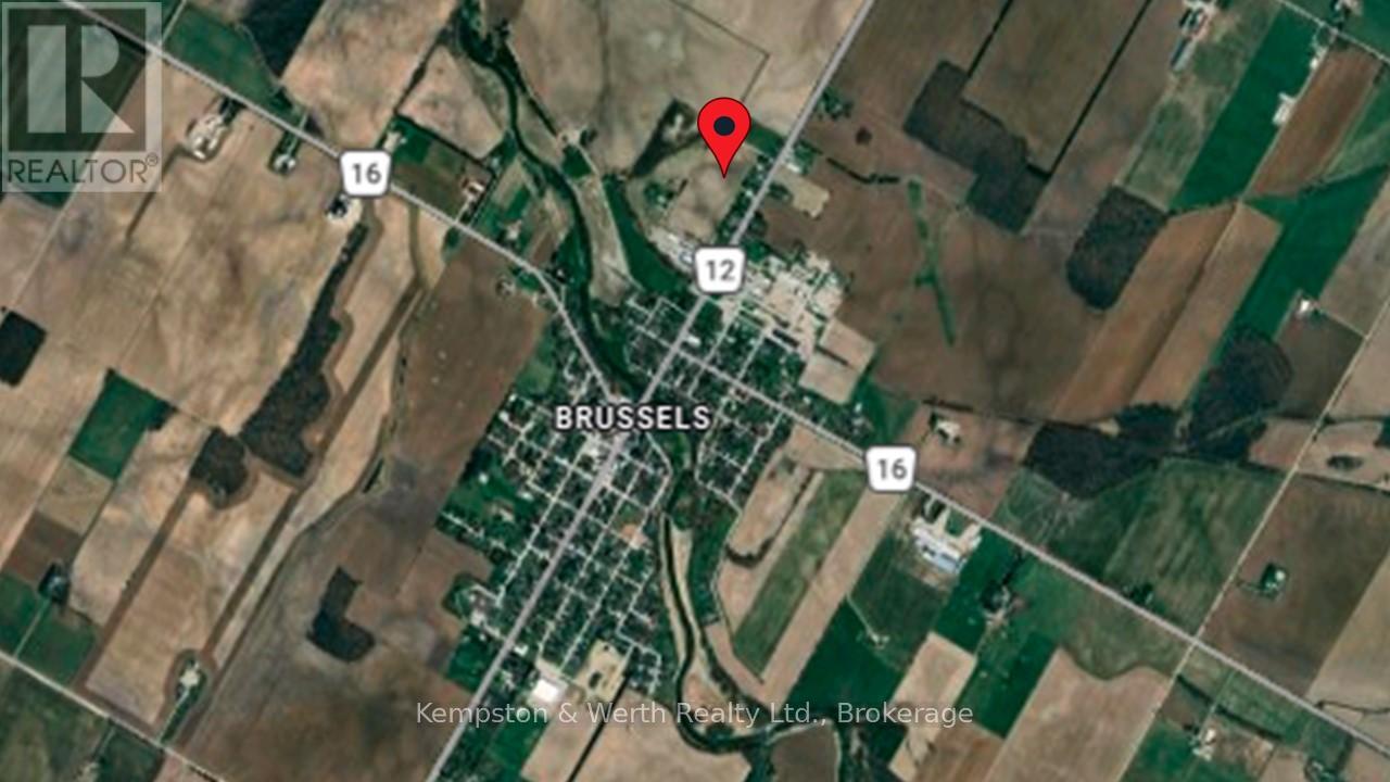 Sizeable 11.5 acre industrial property just off Brussels Line in busy Brussels ON. Services available at highway. Zoned DNE2 (Settlement Area with small Natural Environment piece). Can be purchased separately or together with adjoining parcel to the South (MLS# 40803935). Buyer to do own due diligence for zoning permissions, services, etc. (id:51300)